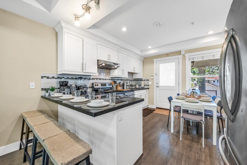 Feel at home in this bright, family-friendly 3-bedroom, 2.5-bath home located in Vancouver’s vibrant East Side. With ample space for up to 10 guests across two levels, this home is perfect for group getaways. Relax in the spacious living areas, cook in the fully equipped kitchen, and stay connected with fast Wi-Fi. Enjoy the convenience of walking to local cafés, parks, and groceries, or reach downtown in just 15 minutes. The property offers easy access to transit, one free parking spot, and self check-in for a seamless stay. Situated in Vancouver’s vibrant East Side, this home offers easy access to local cafés, parks, and grocery stores. Downtown Vancouver is just a 15-minute drive away, making it convenient for exploring the city. Public transit options are readily available, enhancing your connectivity to various parts of the city. This quiet, family-oriented neighborhood is home to elderly residents and young children, so noise is not allowed after 10 PM. Any gatherings or social events after this time may not be suitable for this property. The home has a strict no-smoking, no-vaping, and no-cannabis policy inside or within 6 meters of the property, with a $200 fine per infraction and potential eviction. Quiet hours are from 10 PM to 9 AM, and any noise complaints or violations are subject to a $1000 fine and/or eviction. The property does not allow pets, and a $450 fee will be charged for any unauthorized animals due to severe allergies. At checkout, please empty the fridge, run the dishwasher, and take out garbage and recycling, as a $50 fee applies for incomplete kitchen clean-up. Lost key replacement is $60, and unauthorized late checkout incurs a $75 fee per 30 minutes after 11 AM. The property does not accept local Vancouver guests. [SI]