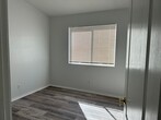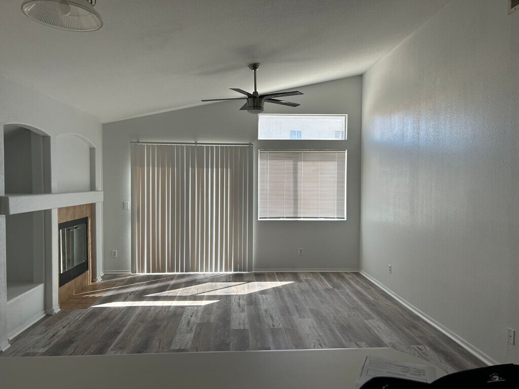 Single Story home in North Las Vegas features wood laminate throughout house, no carpeting. Kitchen features refrigerator, microwave and stove, family room features a gas fireplace and ceiling fan. Master bedroom has walk in closet and ceiling fan. Master bathroom features double sinks and separate shower and tub. Tenant to supply their own washer and dryer.
