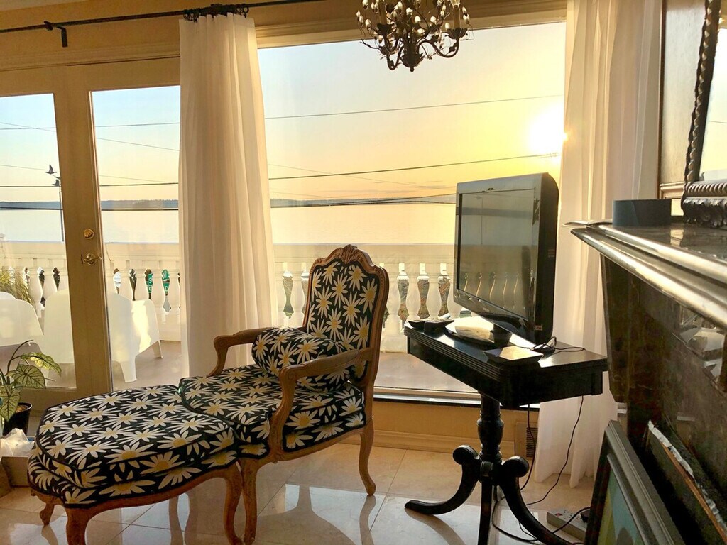 Feel at home in this elegant and quiet furnished short-term vacation rental on the beach in Seattle, offering beautiful views near Weather Watch Park in West Seattle. This luxury apartment features marble floors, an antique marble electric fireplace, and a luxurious master bedroom with a queen-size bed and adjoining marble bathroom with a Jacuzzi-style spa tub and dressing room. It also includes a wet bar, full-size refrigerator, coffee bar, and eclectic style. There's a small meal prep area and a coffee bar, with a full-size refrigerator, cooktop, and microwave. The apartment is beautifully furnished with linens, sheets, towels, kitchen supplies, and two TVs. Binoculars are provided to spot harbor seals, sea otters, eagles, or orca whales. Free street parking is available. The apartment faces west, offering spectacular sunsets and is just a stone's throw away from the beach. From the stone balcony overlooking Puget Sound and the Salish Sea, one can view marine traffic, the port cities of Port Orchard and the Naval Shipyard of Bremerton, plus the islands of Vashon and Blake. Stroll on the beach, pick up pretty stones and shells, and watch wildlife from your window. The La Rustica Italian restaurant is right across the street. Limited cooking facilities are available, including a cooktop and microwave, but no oven. Stir-frying, deep hot oil frying, and baking are not possible. The cleaning staff uses cleaners and essential oils that are harmless to humans but poisonous to animals, so at least 30 days' notice is required before arriving to deep-clean and eliminate any essential oils and other products that may harm animals. A $1000 cleaning fee is charged for falsely claiming a pet to be a service animal. Registration Number: STR-OPLI-19-003036 [SI]