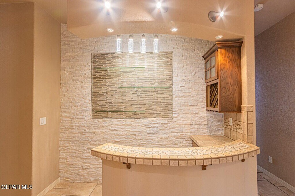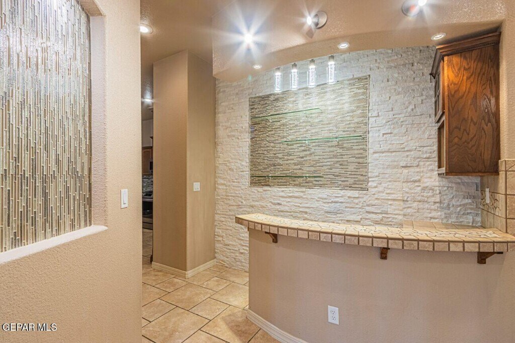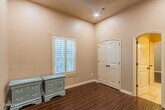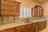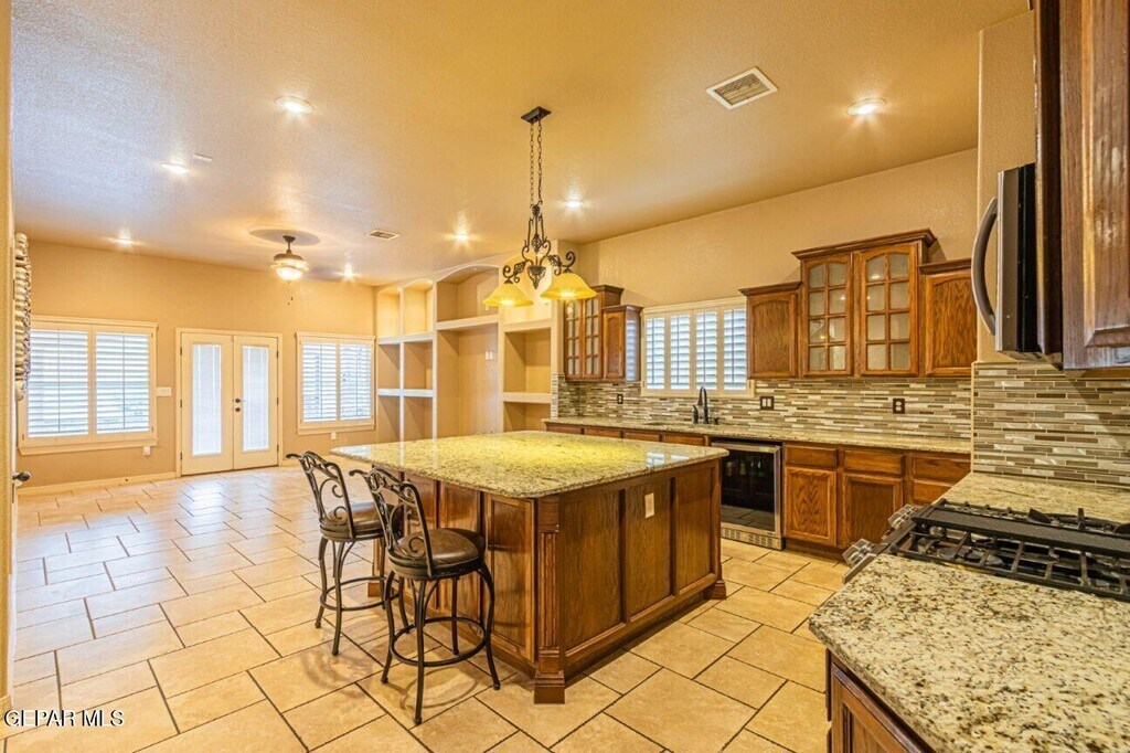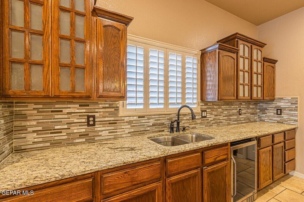 From the moment you step through the door,this stunning home makes a statement with its soaring 16-foot ceilings and elegant finishes throughout. Built by Fortune Homes,this one-of-a-kind property blends style,comfort,and functionality in all the right ways. Custom bar area brings a touch of luxury to your hosting game Guests will appreciate the convenient half bath,while the secondary bedrooms share a Jack & Jill bathroom. The oversized primary suite is a true retreat with high ceilings,a jetted tub,dual vanity,tiled walk-in shower,and large walk-in closet. No carpet here—tile floors throughout! The kitchen features a large island,stainless steel appliances,wine fridge,and built-in bar,ideal for entertaining. Laundry room includes a handy sink. Step outside to your fully landscaped backyard oasis—complete with an outdoor kitchen setup (just add your grill!) and a storage shed. Plantation shutters throughout add the perfect finishing touch. Schedule your tour today!