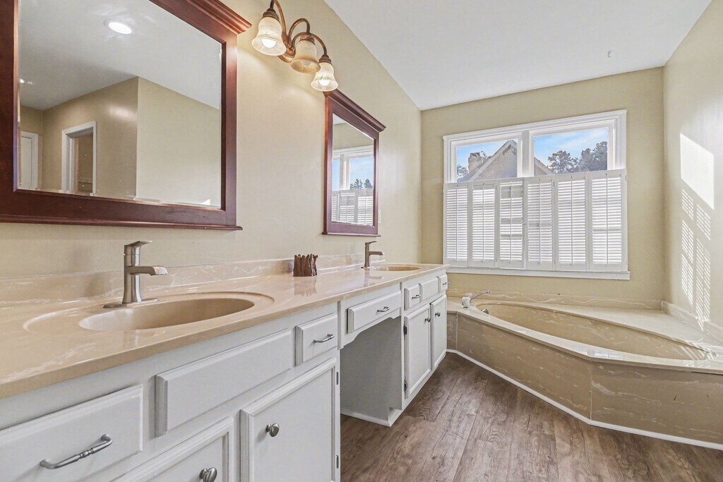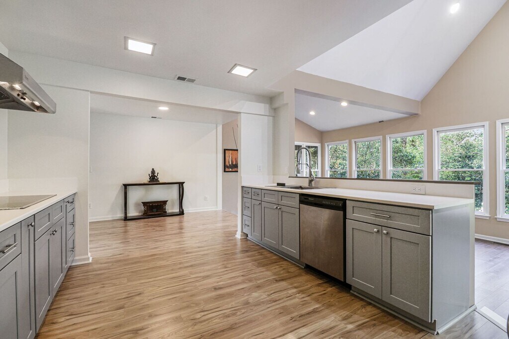 Most rental listings in East Cobb ask you to choose: the space, the location, or the price. This one doesn't. At $5,495 per month, 385 Dogwood Trail delivers a five-bedroom, four-bath painted brick residence on a private, wooded lot in one of Marietta's most sought-after zip codes, and it comes with a pool. From the street, mature landscaping and established azaleas frame the entry, and the circular driveway sets a tone that carries through every room inside. Step through the front door into a generous foyer and the scale of this home becomes immediately clear. The family room anchors the back of the main level with vaulted ceilings, a brick fireplace, and tall windows on both sides that pull in views of the surrounding trees. Hardwood floors run throughout, catching the kind of natural light that only comes from a lot this private. The kitchen is built for someone who actually cooks: gray shaker cabinetry lines both walls, white countertops provide serious prep space, and the appliance package includes a French door refrigerator, double wall ovens, a commercial-grade hood, and a dishwasher, all stainless steel. Skylights overhead keep the space bright even on overcast days. A breakfast nook connects naturally to the kitchen, while the separate dining area and living room give you options for how you want to use the main level on any given evening. The primary suite sits on its own wing with dual walk-in closets and a private bath featuring a soaking tub. Two additional bedrooms, a sitting room, and a bonus room round out the main level, along with multiple full baths and a dedicated laundry room. The deck off the family room overlooks the backyard, and this is where the property really separates itself. A private pool sits in a clearing surrounded by mature hardwoods, with a concrete surround and lounge area that feels more like a weekend retreat than a Tuesday evening at home. Now, the terrace level. This is a full in-law suite, and that description undersells it. A second kitchen with white shaker cabinets, granite counters, subway tile backsplash, and a gas range anchors the space. The recreation room is generous enough to serve as a primary living area on its own. Two additional bedrooms, two full baths, bonus rooms, a separate laundry, and direct walkout access to the patio and pool level make this a self-contained living space for extended family, long-term guests, or a household that simply needs room to spread out without stepping on each other. French doors and oversized windows across the terrace level bring the wooded backyard inside, and the beadboard detail throughout keeps the finishes clean and intentional. Marietta's 30067 corridor puts you minutes from the Town Center, the Avenue, Marietta Square, and quick access to I-75 and I-285 for commutes to Midtown, Buckhead, or the Perimeter. Top-rated Cobb County schools serve the area, and the everyday conveniences (Publix, Target, Whole Foods) are all a short drive. This is the rare rental where you get five bedrooms, four baths, two full kitchens, two living levels, a pool, and a 30067 zip code, all without the commitment of a mortgage. Homes at this level in East Cobb lease quickly. Call your agent to schedule a private tour. Applications are processed through Keen + Management and require income verification, credit check, and rental history. Qualified applicants, please inquire directly. Please be aware that rental scams are common: never send money to anyone you haven't talked to and confirmed they are representing the owner, never wire funds without confirmation, never send money via Cash App, Venmo, or PayPal, and always verify the listing through a licensed property management company before submitting any payment.