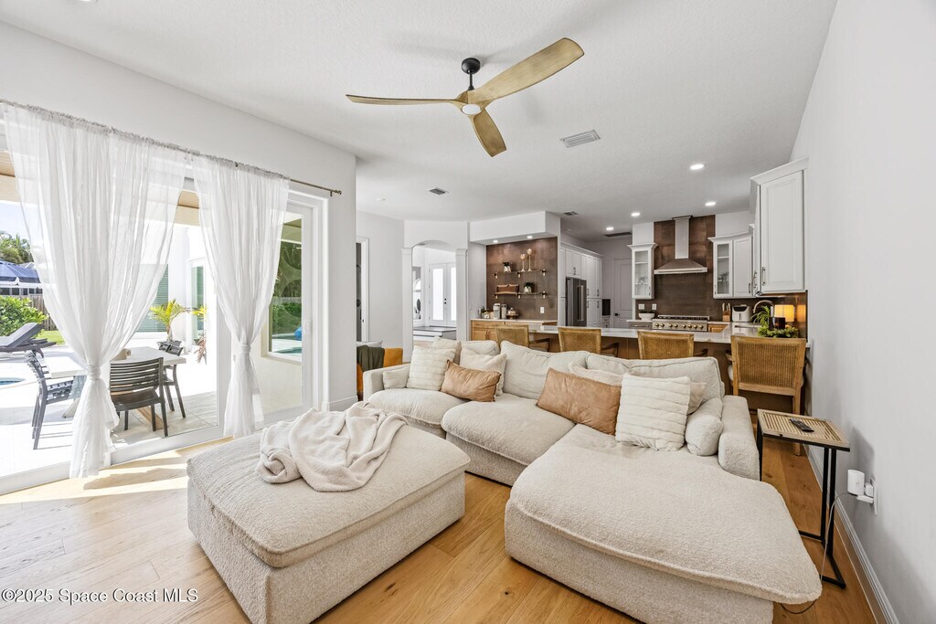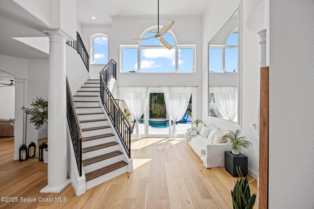 Nestled in Indialantic's most exclusive gated community,this fully renovated two-story residence offers a perfect balance of elegance and comfort. Flooded with natural light,the home's open design features modern finishes,spacious living areas,and a primary suite with a spa-inspired bathroom and dual walk-in closets. Step outside to your private retreatcomplete with a sparkling pool,pergola,and summer kitchenideal for entertaining or relaxing under the Florida sun. Thoughtfully updated throughout,the home boasts a brand-new tile roof,impact-rated windows and doors,new AC systems,a new tankless hot water heater and water filtration system,quartz countertops,American-made cabinetry,premium appliances,and more. With secure access to both the riverside and oceanside of the island,and just minutes from schools,shopping,and dining,The Cloisters offers not just a home,but a lifestyle of coastal luxury