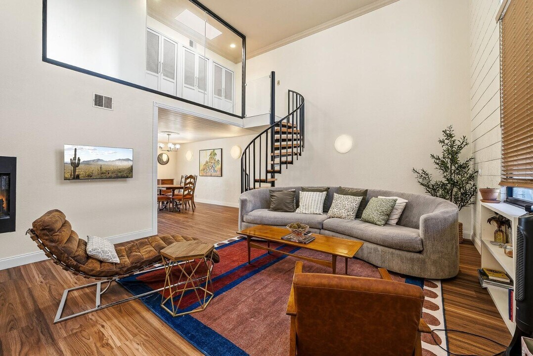 Contemporary,fully furnished loft-style townhome located in the highly sought-after Pierson West Historic District in Uptown Phoenix. Step into a bright and airy living space featuring soaring ceilings,expansive windows,and abundant natural light. The modern kitchen is both stylish and functional,complete with updated appliances,sleek fixtures,and a designer tile backsplash. The main level includes the living/family room,kitchen,a full bathroom,and a versatile bonus room. Upstairs,youll find the primary bedroom,a second full bathroom,in-unit laundry,extended hallway closets,and access to a spacious back deck. Wood-look vinyl plank flooring runs throughout the home,offering durability and contemporary appeal. Enjoy outdoor living with a private back patio perfect for relaxing,barbecuing,or gardening,or take advantage of the community pool. There are also 12 additional covered unreserved parking spaces on a first come first serve basis. $75 Application Fee (up to two applicants),includes background/credit screening. $180 Administration Fee. Lease will be prepared by the Landlord. Verifiable income of 3x the monthly rent. No evictions or landlord debt. Minimum credit score of 660.