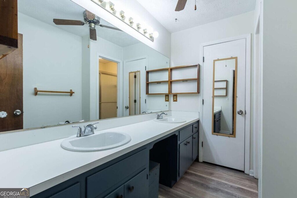 Set on over half an acre, this beautifully updated 3-bedroom, 2-bath home blends comfort, style, and functionality. The spacious living room features a striking stone fireplace framed by built-in bookcases, creating a warm and inviting focal point. The kitchen includes stainless steel appliances and opens to a bright dining area, while brand-new luxury plank flooring and fresh paint flow throughout. The primary suite offers a private retreat with an en suite bath featuring dual vanity sinks. Enjoy the best in indoor/outdoor living on the large screened patio/sunroom overlooking the peaceful backyard. The garage has its own power supply ideal for a workshop, studio, or hobby space and a shared washer/dryer is available in the laundry area used jointly with the tenants in the basement apartment. Tucked away for privacy yet close to shopping, dining, and major highways, this home offers the perfect Douglasville lifestyle.