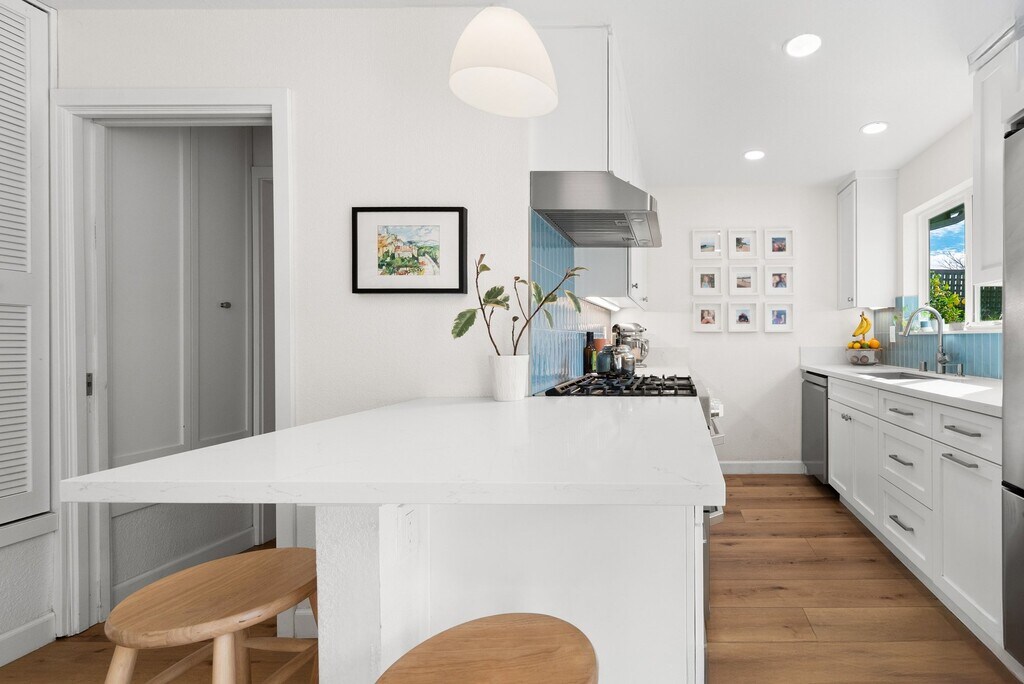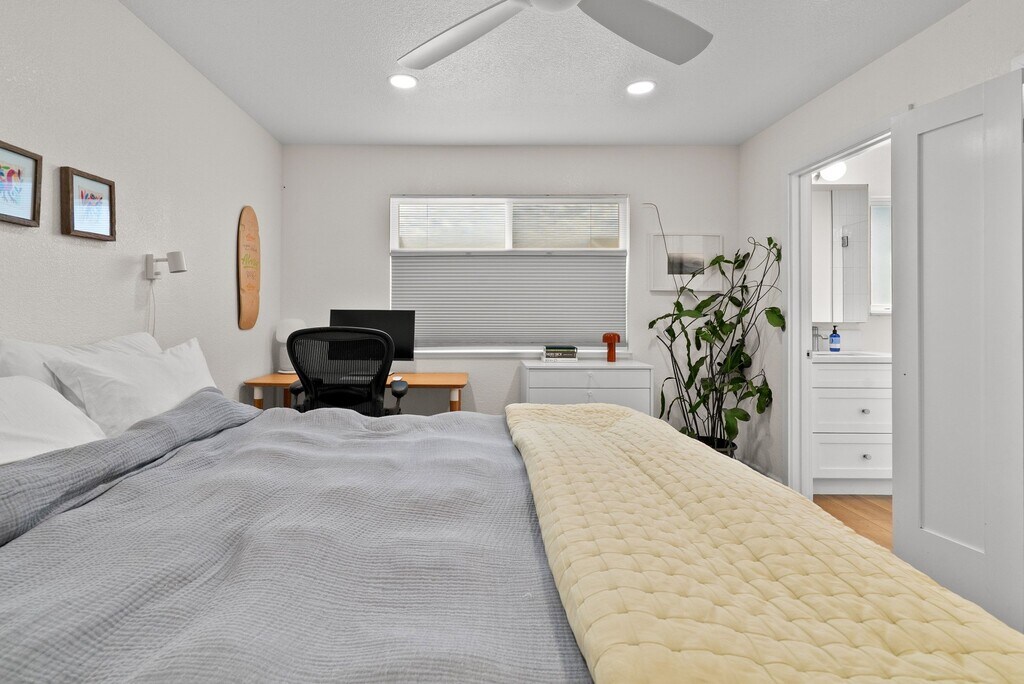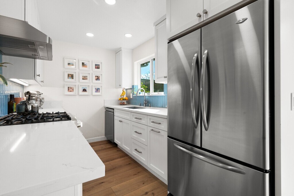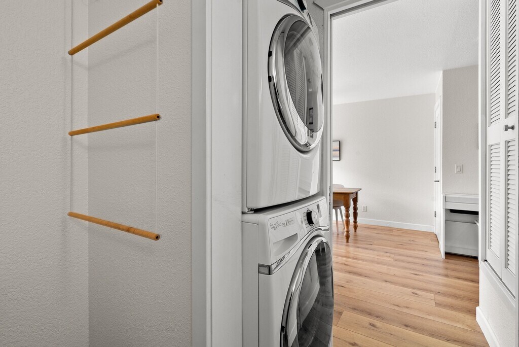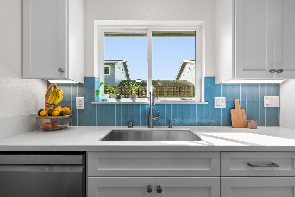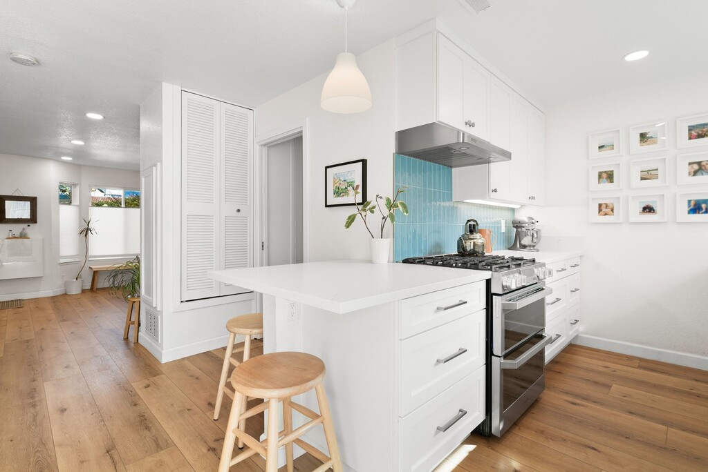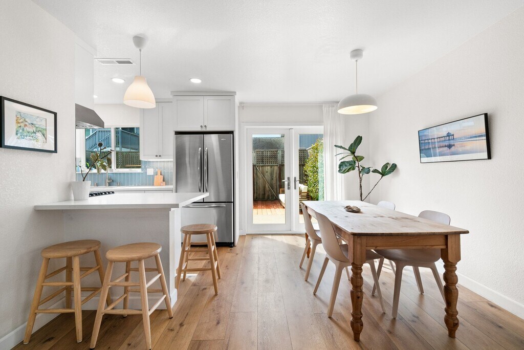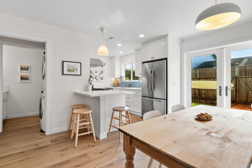 Discover coastal living at its finest in this beautifully remodeled 2-bedroom, 2.5-bathroom condo, perfectly situated just a block and a half from Pleasure Point and adjacent to Floral County Park. Every inch of this 1,250 sq ft home has been thoughtfully updated. The showpiece of the renovation is the expanded kitchen — designed for those who love to cook and entertain — featuring brand new cabinetry, fresh countertops, and generous prep space you won't find in comparable units. It flows seamlessly into the dining area and light-filled living room, creating an open, connected feel that makes everyday living feel effortless. Gorgeous new vinyl floors run throughout, complemented by a fresh interior paint palette that feels clean, bright, and move-in ready. Upstairs, both bedrooms are fully ensuite, each a primary suite in its own right with fully updated bathrooms. A convenient powder room is tucked downstairs near the in-unit washer and dryer. Outside, a generous backyard, fully fenced for your small dog, sets the scene for summer evenings, weekend gatherings, or simply unwinding after a day at the beach. A one-car garage provides essential storage for your boards and gear. Whether you are hosting sunset gatherings in the backyard or strolling to local restaurants, this is not your average rental — it's a fully remodeled home in one of Santa Cruz's most sought-after coastal neighborhoods.
