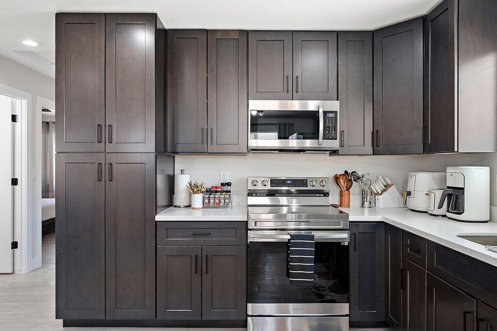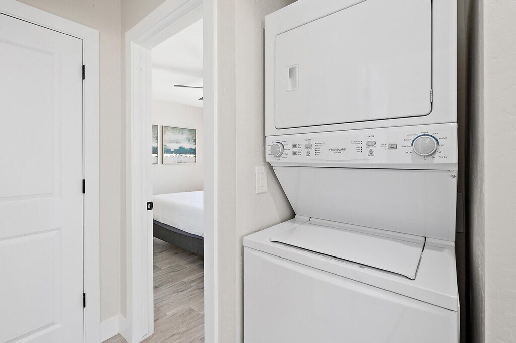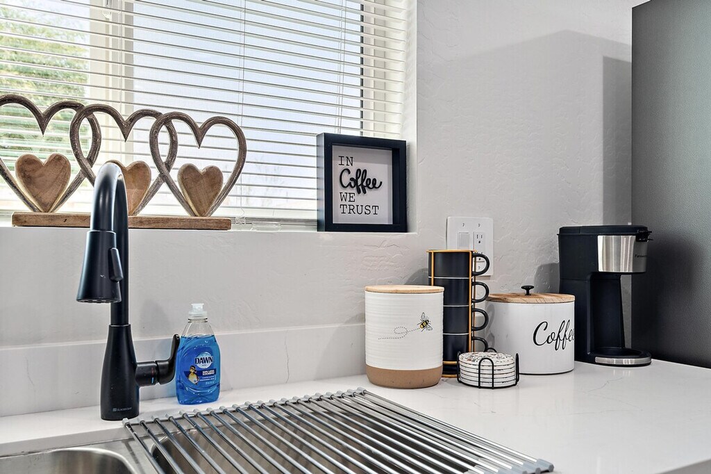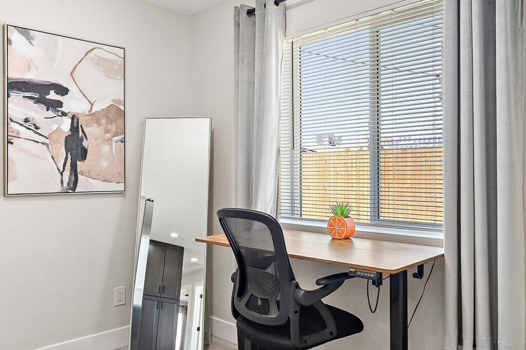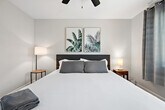 Feel at home in this charming single-story apartment featuring two bedrooms and one full bath, complete with two king-size beds. Enjoy the convenience of in-unit laundry and a fully fenced backyard with a patio set. The apartment is fully furnished and equipped with a full kitchen, dining set for four, central AC and heating, and three smart TVs. High-speed Wi-Fi and free parking are also included. The kitchen is fully equipped with a full-size fridge, a 4-burner stove, a microwave, an oven, a dishwasher, an air fryer, a blender, and all necessary cookware and seasonings. Enjoy your morning coffee with the provided coffee maker, ground coffee, and coffee mugs, along with drinking and wine glasses. Pets are welcome with a non-refundable fee of $150 per pet. Enjoy the convenience of free parking on the premises. This apartment is ideally located with easy access to various attractions and facilities. Chase Field is just 3.7 miles away, while Downtown Phoenix is 4.5 miles away. Other nearby attractions include the Phoenix Rising FC Stadium, Papago Park, Phoenix Zoo, and Desert Botanical Garden, all within a short drive. The apartment is also conveniently located near several hospitals and universities, including Banner - University Medical Center Phoenix and Arizona State University. The apartment features a smart lock and lockbox for easy access. Smoking and parties are not allowed on the premises. The apartment includes a desk and chair, making it remote work-friendly with high-speed Wi-Fi available for all your work-from-home needs. [SI]