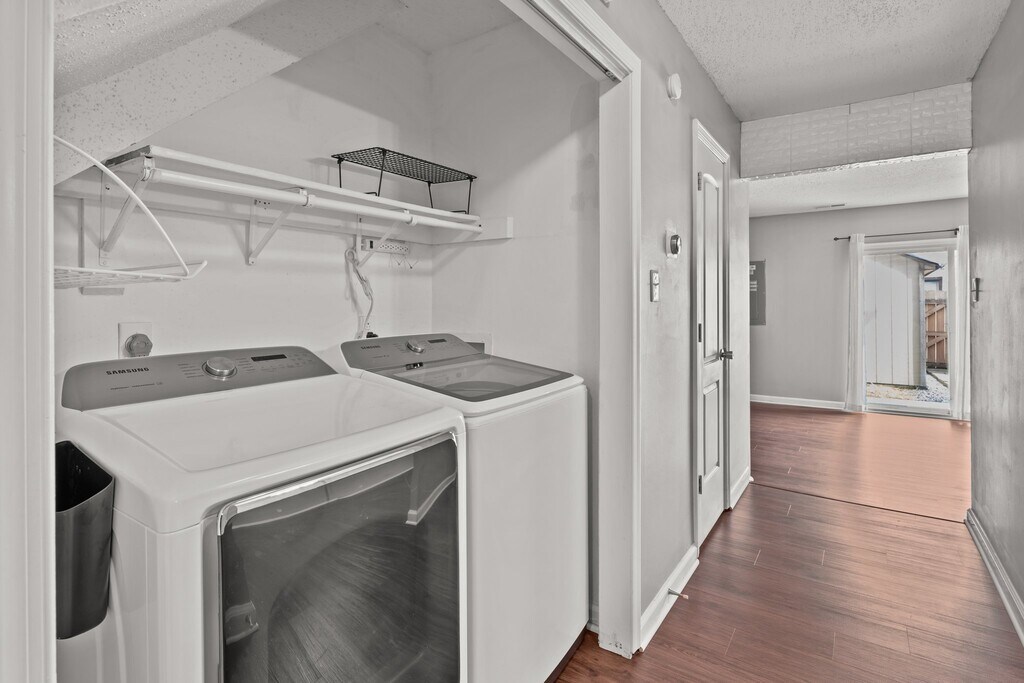 Chimney Hill, 2 bedroom, 2.5 bath, 2 story townhouse with approximately 1,391sf of living space. Large family room with sliding glass doors and lighted ceiling fan. Remodeled eat-in kitchen has Whirlpool stainless appliances to include refrigerator, smooth top stove, built-in dishwasher and microwave, double stainless sink, tile backsplash, bar area, and large pass through window to the dining room. Two primary suites containing closets and lighted ceiling fans, full baths with tile floors and raised vanities. Other amenities include: laundry area with Samsung washer and dryer that are "as is" items, half bath with tile flooring and raised vanity, shed, deck, patio and privacy fenced backyard and multicar side by side driveway parking. No pets. Online applications processed at and select online services and online application. Minimum required credit score for each applicant is 625. Minimum combined credit score is 2.5 times the monthly rent. Home is available for quick possession. Call Walter Sims at Monday - Sunday from 9am-5pm for an appointment. Chimney Hill, 2 bedroom, 2.5 bath, 2 story townhouse with approximately 1,391sf of living space. Large family room with sliding glass doors and lighted ceiling fan. Remodeled eat-in kitchen has Whirlpool stainless appliances to include refrigerator, smooth top stove, built-in dishwasher and microwave, double stainless sink, tile backsplash, bar area, and large pass through window to the dining room. Two primary suites containing closets and lighted ceiling fans, full baths with tile floors and raised vanities. Other amenities include: laundry area with Samsung washer and dryer that are "as is" items, half bath with tile flooring and raised vanity, shed, deck, patio and privacy fenced backyard and multicar side by side driveway parking. No pets. Online applications processed at and select online services and online application. Minimum required credit score for each applicant is 625. Minimum combined credit score is 2.5 times the monthly rent. Home is available for quick possession. Call Walter Sims at Monday - Sunday from 9am-5pm for an appointment.