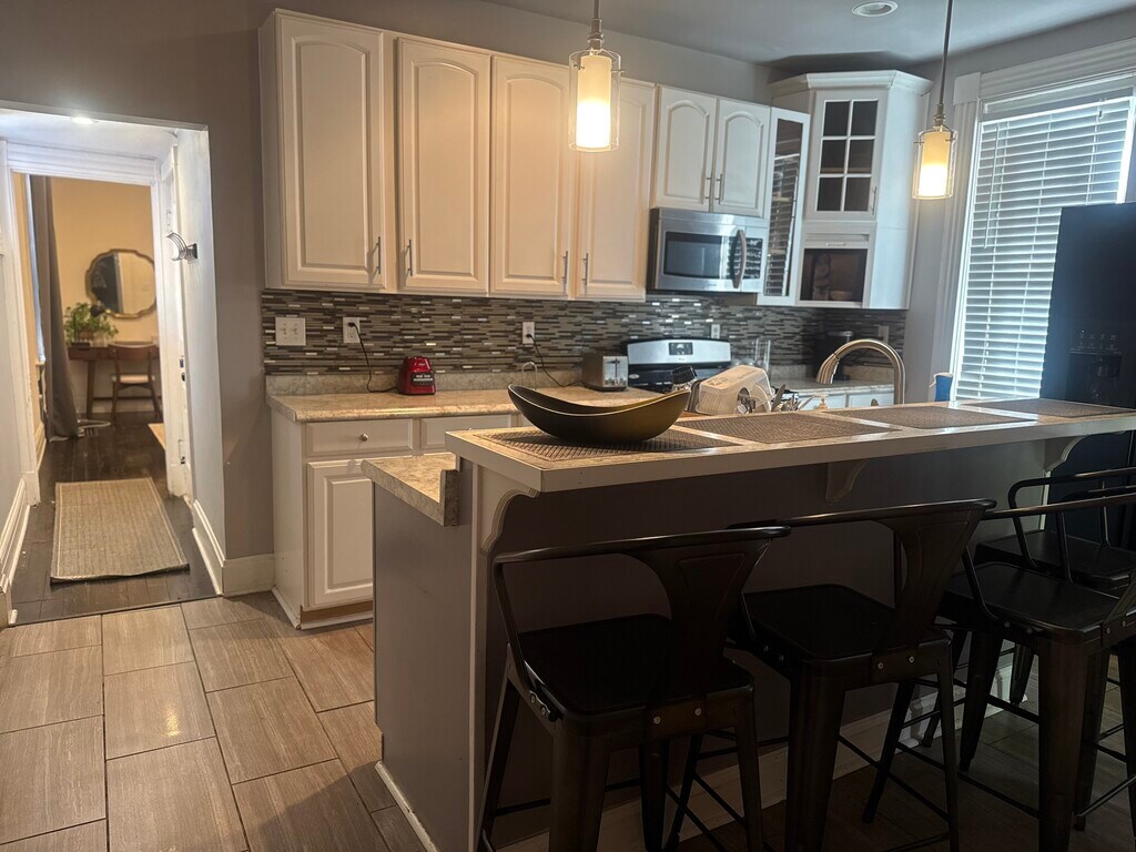 Furnished unit!Come check out this beautiful 1 bed 1 bath duplex, this is a downstairs unit, fully furnished with modern furnishings and fixtures, large living room with desk/study area, large bedroom with sitting area and access to a nice porch in the front, enjoy a beautiful updated kitchen with island sitting & much more. Shared free laundry in the basement. Parking in the back of home with a nice garden and sitting area.Great location near hospitals, zoo and much more! 3-12 month leases available.Baron Management does require a completed application through our website ($15) with a photo ID and 3 recent paystubs attached. Please reach out to schedule your tour today. .