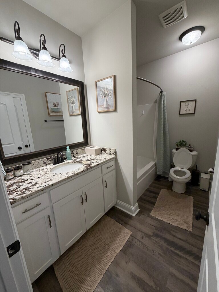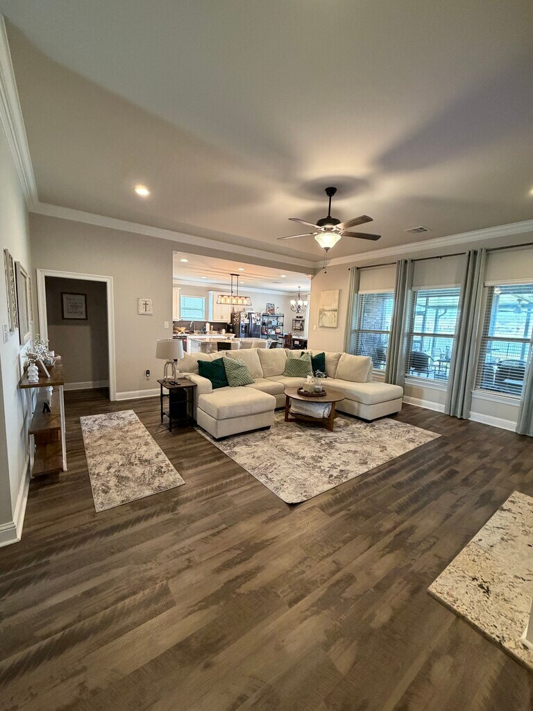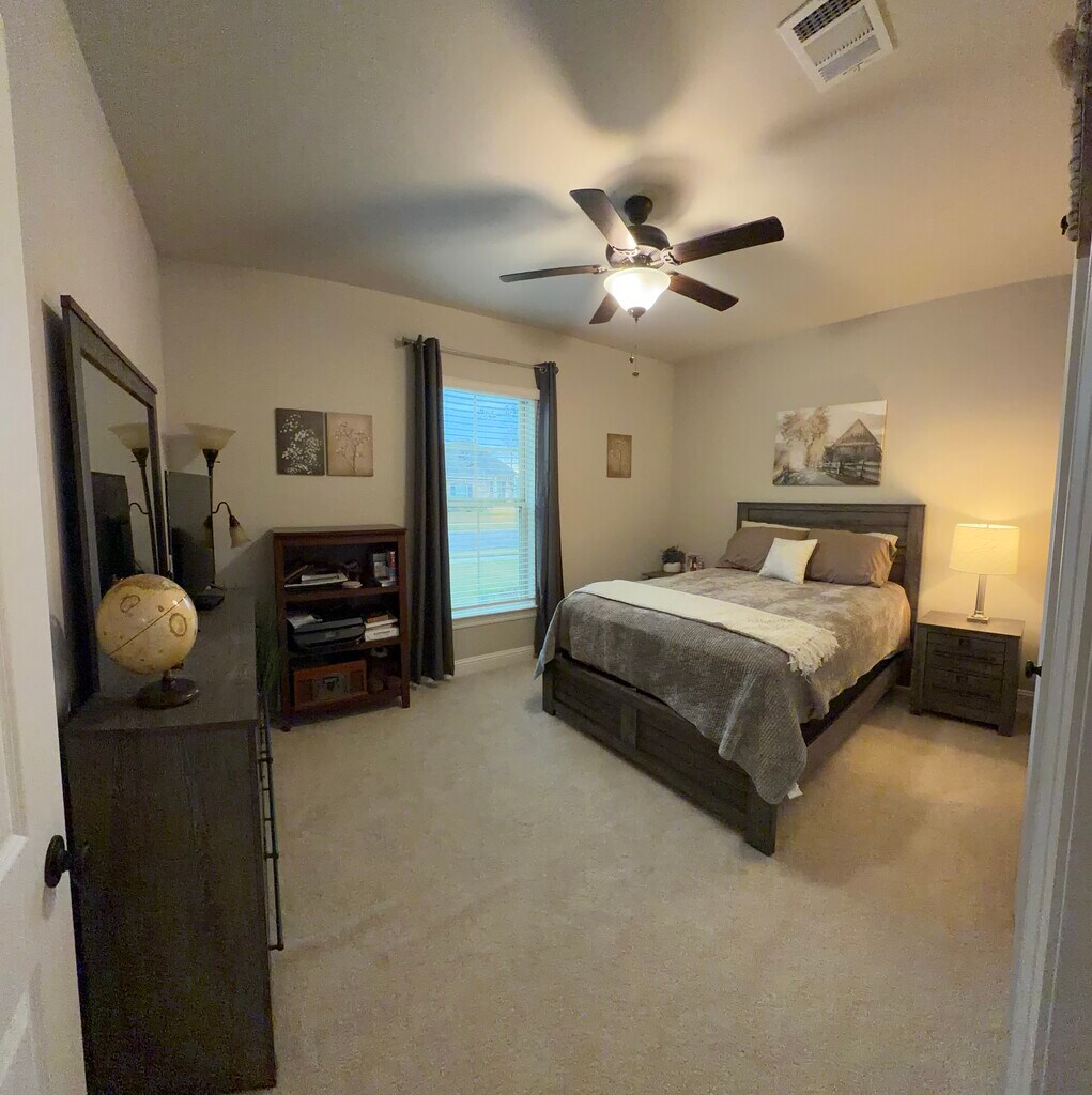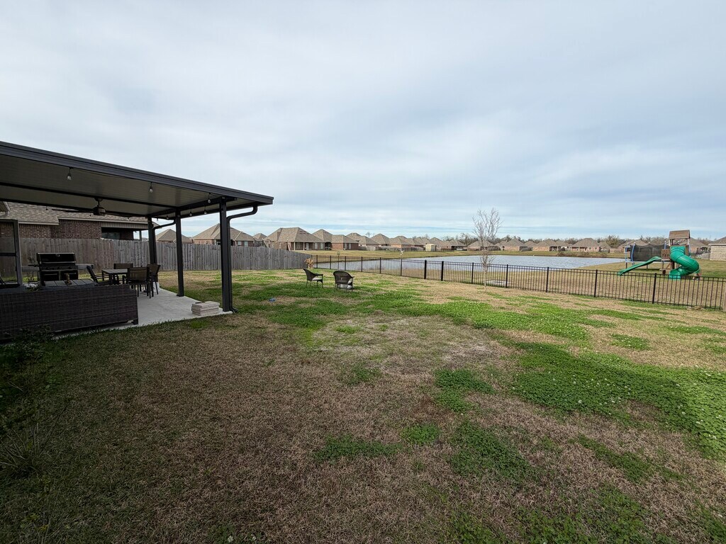 Welcome to this spacious and well-maintained 4-bedroom, 2-bathroom home offering comfort, functionality, and serene pond views. Designed for both everyday living and entertaining, this home features an open and inviting layout with abundant natural light throughout. Enjoy tranquil pond views right from your home, ideal for unwinding after a long day or spending quiet weekends as a family. The outdoor space is a true highlight, featuring a screened-in back porch perfect for relaxing year-round and a fully fenced backyard that provides a great setting for kids to play and parents to unwind with peace of mind. This single-story property offers 2,204 sq ft of modern living space with open floor plans. The kitchen features granite countertops, white cabinets, a stylish backsplash, a large chef's island, a gas cooktop, and a generously sized pantry. Durable vinyl plank flooring flows through the main living areas, with carpet only in the bedrooms. The spacious primary bedroom overlooks the water and includes a private en-suite with double vanities, a walk-in shower, a separate garden tub, and a large walk-in closet. All three additional bedrooms are located at the front of the home and share a full bathroom. Renter is responsible for all utilities bills. 12-month contracts.