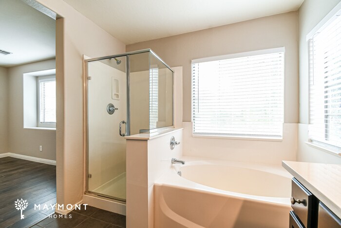 MOVE-IN READY This home is move-in ready. Schedule your tour now or start your application today. Monthly Recurring Fees: $25.00 - Smart Home $10.95 - Utility Management 3857 E Trigger Way in Gilbert, AZ offers 3 bedrooms, 2.5 bathrooms, and 1,684 square feet set within a well-connected neighborhood close to everyday conveniences. Positioned near Loop 202, this location places SanTan Village Marketplace and Downtown Gilbert roughly 10–15 minutes away, making dining, shopping, and entertainment easy to reach while still enjoying a residential setting. The first floor unfolds with a clear, open layout designed for daily flow. Tile flooring spans the living and dining areas, creating continuity from the front entry through the heart of the home. The kitchen anchors the space with an oversized island, dark cabinetry, and stainless steel appliances, offering ample counter space for prep and gathering. A sliding door extends the dining area outdoors, turning the patio into a natural extension of the interior for open-air use. Direct access to the attached two-car garage adds everyday convenience, while a smart lock and smart thermostat bring added efficiency. Upstairs, the layout shifts to a more private setting. The main bedroom features hardwood flooring, generous natural light, and a dedicated bath with dual sinks, a soaking tub, and a separate shower. Two additional bedrooms and a full bath are thoughtfully arranged nearby, along with a laundry room positioned for practical access. Each space is proportioned to allow flexibility for work-from-home setups, hobbies, or quiet retreat. From its cohesive finishes to its smart-home features and proximity to some of Gilbert’s most popular destinations, this home offers a balanced layout designed for comfort and connection. Community amenities further enhance the setting, adding shared outdoor spaces just beyond your door. Apply now! *Maymont Homes provides residents with convenient solutions, including simplified utility billing and flexible rent payment options. Contact us for more details. This information is deemed reliable, but not guaranteed. All measurements are approximate. Actual product and home specifications may vary in dimension or detail. Images are for representational purposes only. Some programs and services may not be available in all market areas. Prices and availability are subject to change without notice. Advertised rent prices do not include the required application fee, the partially refundable reservation fee (due upon application approval), or the mandatory monthly utility management fee (in select market areas.) Residents must maintain renters insurance as specified in their lease. If third-party renters insurance is not provided, residents will be automatically enrolled in our Master Insurance Policy for a fee. Select homes may be located in communities that require a monthly fee for community-specific amenities or services. For complete details, please contact a company leasing representative. Equal Housing Opportunity. This property is subject to homeowners' association (HOA) governance; restrictions and covenants may apply. Estimated availability date is subject to change based on construction timelines and move-out confirmation. This property allows self guided viewing without an appointment. Contact for details.