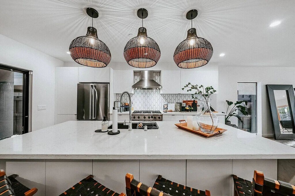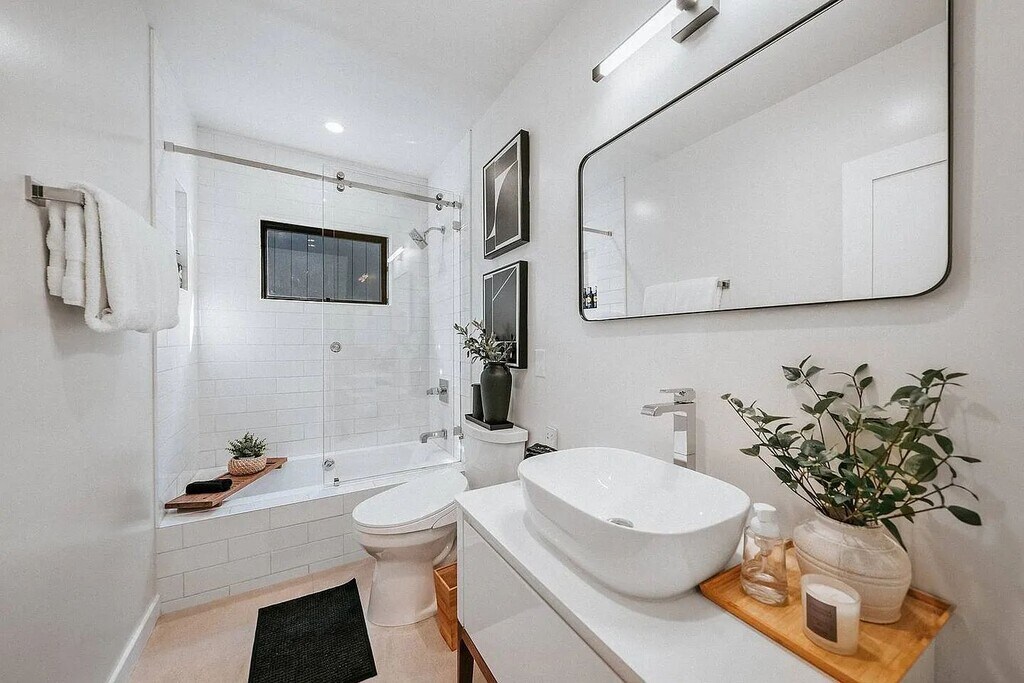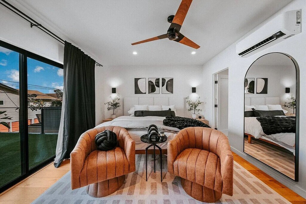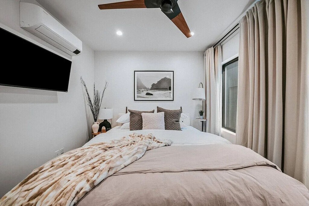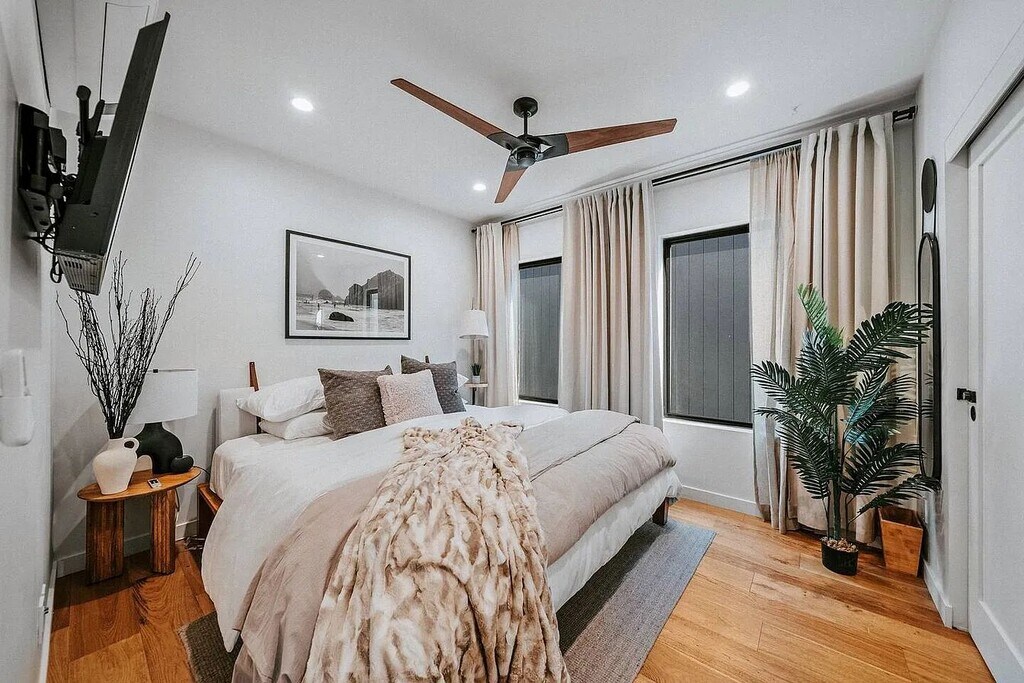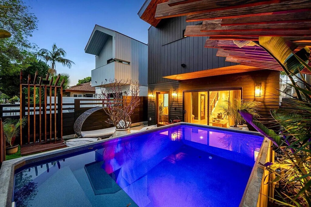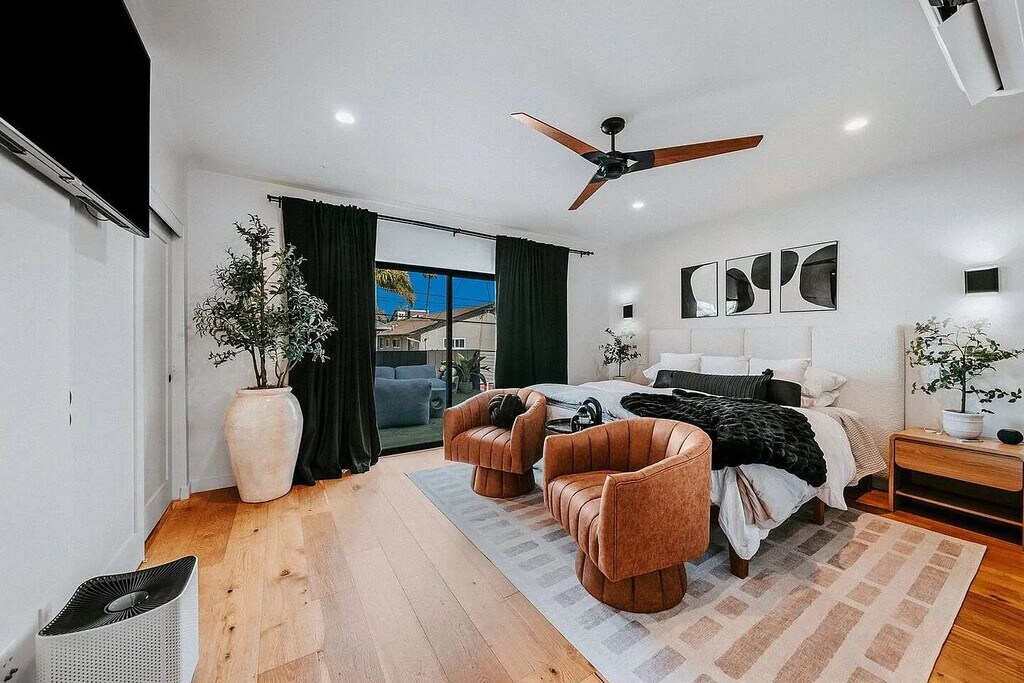 With overwhelming requests for short term rental, we've decided to list the home for mid and long term rental! This brand new ultra luxury fully furnished 3 bedroom, 2.5 bathroom property sits 4 houses from the water on Mission Bay. Designed with a Tulum inspired twist, the property has tropical landscaping, a plunge pool, and third floor rooftop deck with 360 views of Mission Bay, Downtown, and the beach. All bedrooms are furnished with the same amenities: - Memory foam mattresses - Memory foam and ultra lux down pillows - 650 thread count Egyptian cotton sheets - Sijo cooling Eucalyptus duvets covering a cloud like comforter - Apple TV with flat screen and Apple Home Pod surround sound - A pillow menu of over 4 pillows to choose from All bathrooms are furnished with the same amenities: - Toilets are heated bidet Japanese smart toilettes - All bathrooms have eco-friendly Lather hand soap, body lotion, shampoo, conditioner, and body wash - Full white towel sets Tech: The entire house has been built from the ground up with the smartest home tech available. The whole home is ran through Apple Home, available on a iPad located in the kitchen, or anyone's Apple iPhones/iPads. Every room has black Apple HomePods where you can control the entire property with your voice. The light switches are Leviton smart switches with custom Apple Scenes where just like at a 5 star resort, one click of a button and the entire room changes with custom scenes. Kitchen & Dining Room: The kitchen offers a custom build marble waterfall island with brand new fridge, dishwasher, and microwave. The kitchen is 100% fully stocked with dishes, pots/pans, knife set, Bruvi smart coffee maker, full organic spice set, and all the cooking supplies any group may need. The Dining room offers a large dining table with two benches which holds 8 people, with 2 handmade custom built Tulum inspired chairs. HIGHLIGHTS Plunge pool Secret jungle stairway Designer furnished Outdoor dining and lounges Walk to Mission Bay Close to the beach Two car garage Full outdoor kitchen on third floor balcony Master bedroom has its own private balcony Here are the different pricing options based on term: 1-3 Months: $16,000/mo 3-6 Months: $15,000/mo 6+ Months: $14,000/mo (18+ Months would be available to the right tenant at a discounted rate) All utilities will be included (up to a certain amount), cleaning supplies, kitchen items, etc are all included as well as cleaning service once a month. Feel free to reach out with any additional questions.