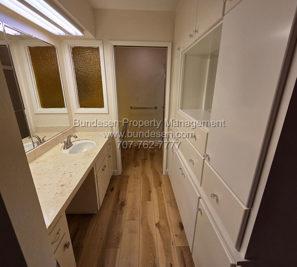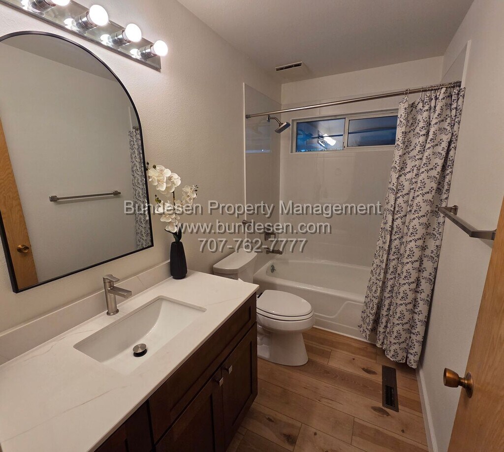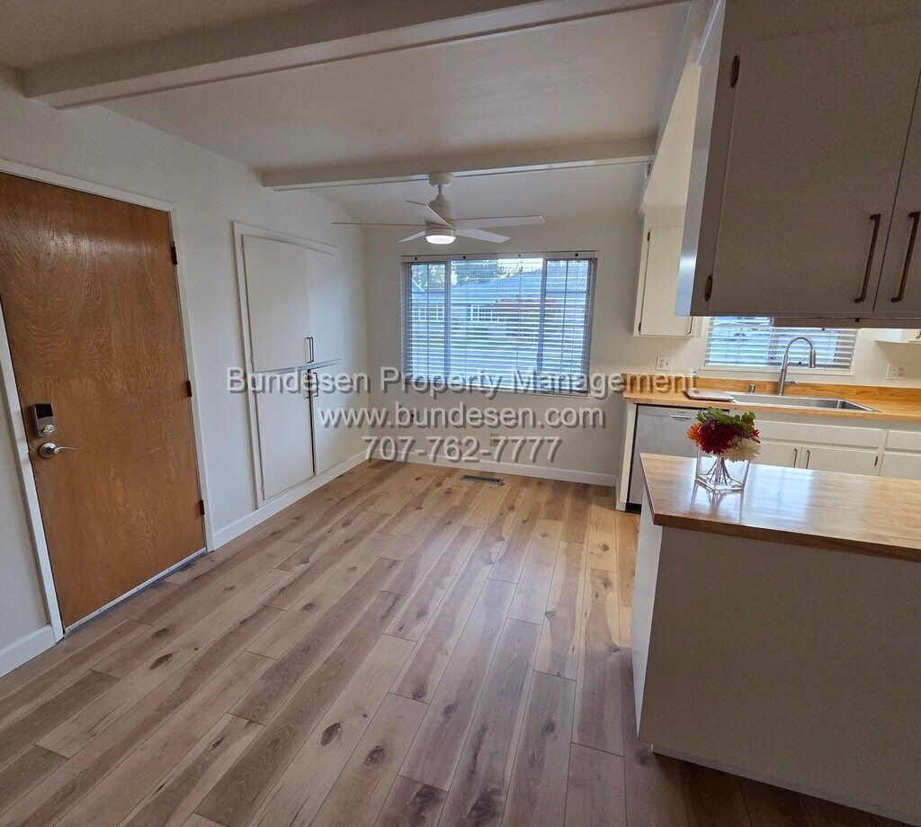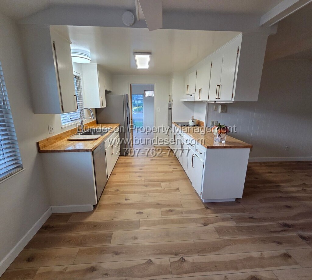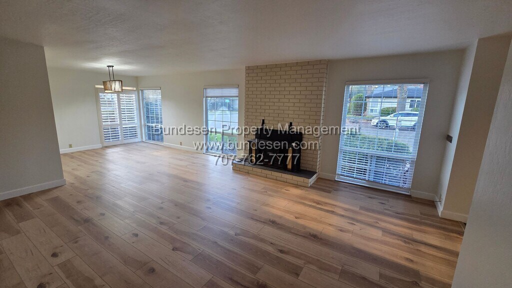 Beautifully Updated 4BD / 3BA Ranch-Style Home 2015 Sq. Ft. | Brush Creek, Santa Rosa Step into a spacious, mid-century contemporary charmer found in the desirable and well-established Brush Creek neighborhood. This thoughtfully updated home features a balance of timeless architecture and modern upgrades, offering comfort, style, and functionality throughout. The home welcomes you with new luxury LVP flooring, resurfaced and freshly painted interior walls, and abundant natural light. The formal living room and dining room share an open layout, enhanced by a large wood-burning stove and expansive windows that brighten the space. Interior Features: • Formal living/dining room with open flow & natural light • Wood-burning stove — perfect for cozy evenings • Modern kitchen with refreshed cabinetry & butcher-block countertops • New refrigerator + glass-top electric stove • Built-in convection oven & plentiful cabinet storage • Family room + breakfast nook just off the kitchen — ideal for gatherings • Built-in hallway cabinetry & storage closet • The hall bathroom has been fully upgraded with new porcelain tile in the shower, new vanity, modern fixtures, updated hardware, and a new toilet. Bedrooms + Layout: • Spacious primary bedroom with sliding glass door to the backyard • Primary ensuite includes built-in drawers/cabinets + organized walk-in closet • Second ensuite bedroom with private full bath + walk-in closet with built-ins • Two additional bedrooms located across from the primary — both generously sized • Total of 4 bedrooms + 3 full bathrooms for highly flexible living Outdoor & Property Highlights: • Mature front and backyard landscaping • Gardener included • Covered back patio — ideal for relaxing or entertaining • Small storage shed for tools & outdoor equipment • Two-car garage with built-in shelving for extra storage Pets: The owner will consider a small well mannered pet with an additional deposit.