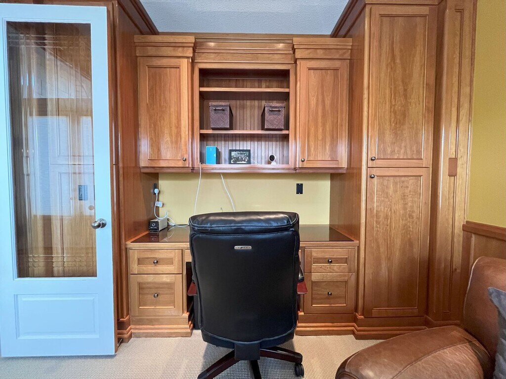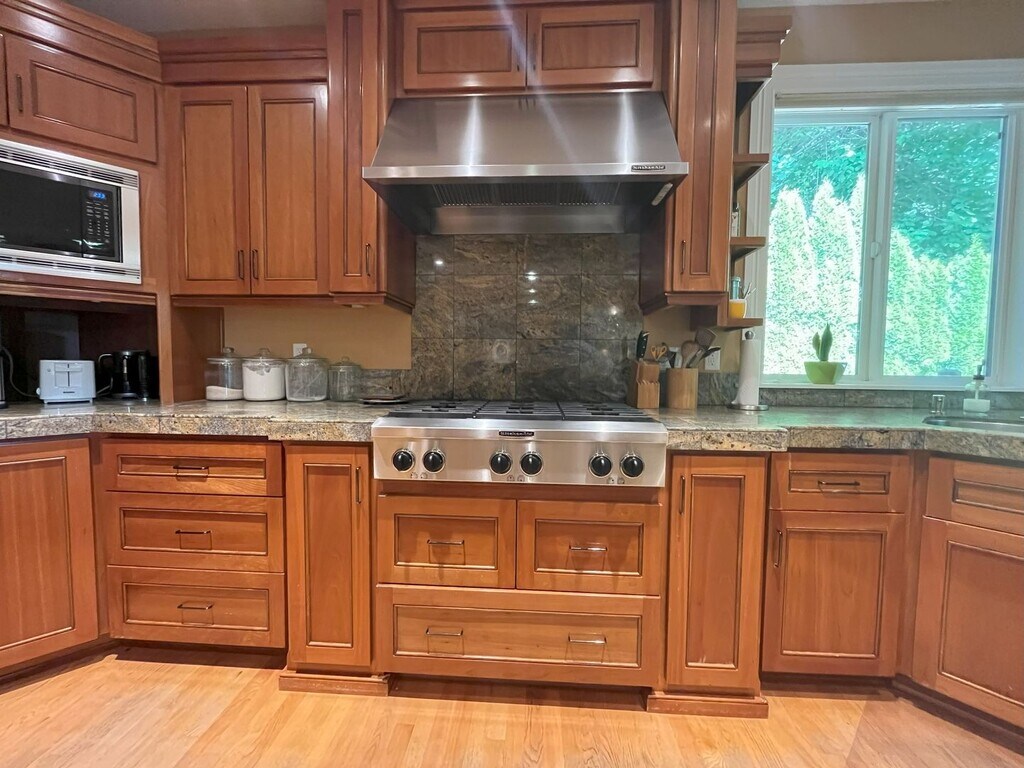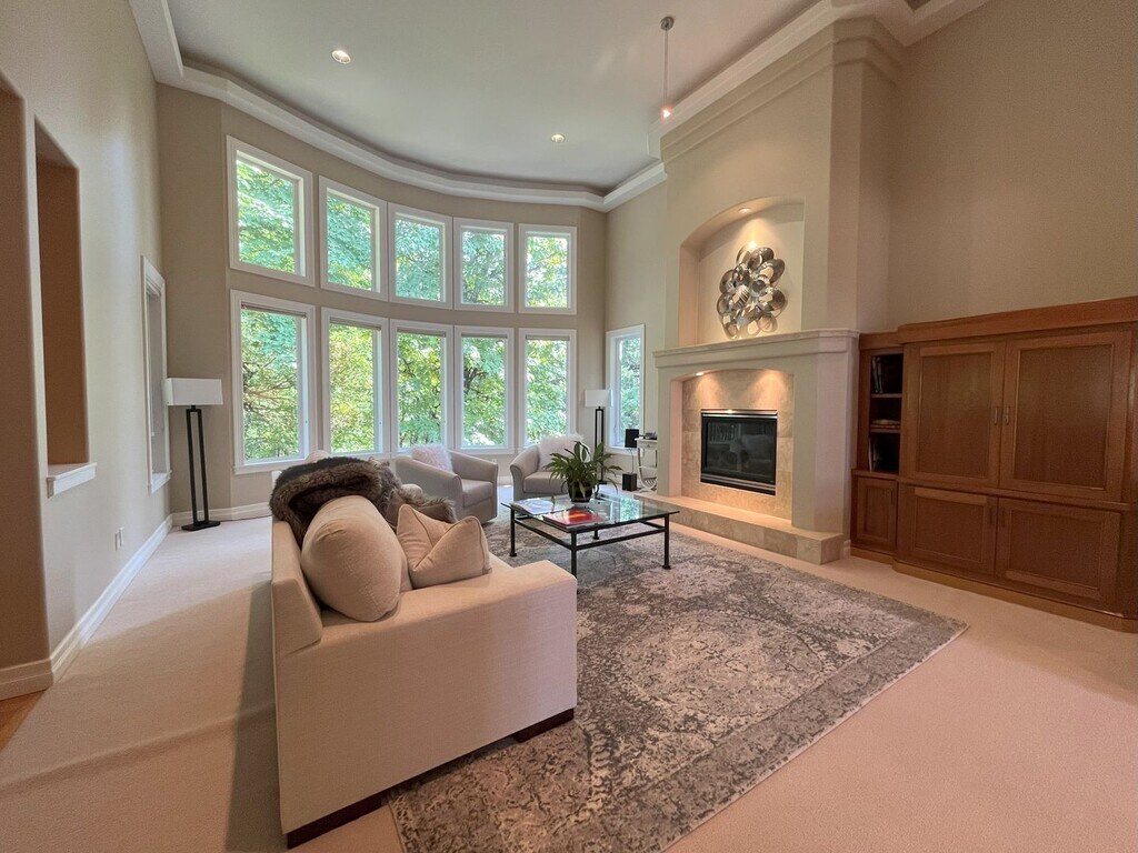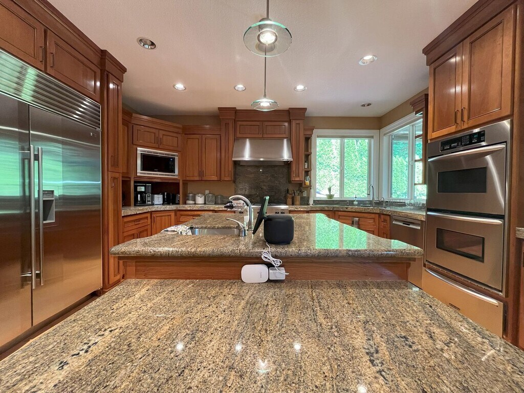 This stunning 4,463 sq. ft. two-story home offers an exceptional blend of elegance, space, and comfort. Featuring five bedrooms, three bathrooms, and multiple living areas, this residence is designed to impress both inside and out. As you arrive, you’re greeted by a beautifully landscaped front yard with lush grass, manicured shrubs, and a graceful Japanese maple tree. A covered walkway framed by pillars leads to a striking glass entry door, setting the tone for the luxury within. Inside, the thoughtful floorplan begins with a private office to the right, complete with built-in desk space, a large window, and plenty of room for an additional seating area or second workspace. Across the hall, a formal dining room offers space for a large dining table under a modern pendant light, framed by tall windows that flood the room with natural light. At the heart of the home, the expansive gourmet kitchen is a chef’s dream. It features a large island with seating, a wine cabinet, stainless steel double ovens, a six-burner gas cooktop, oversized refrigerator, deep stainless steel sink, and granite countertops throughout. Rich wooden cabinetry provides abundant storage, while a nearby breakfast nook and staging bar with a wine fridge make entertaining effortless. The adjoining living room boasts soaring ceilings and tall windows that overlook the forest, bringing the outdoors in. A cozy fireplace and built-in bookshelves add warmth and character to this grand space. The main-level primary suite is a retreat in itself, offering plush carpeting, generous proportions, a ceiling fan, and a double-sided fireplace that can be enjoyed from both the bedroom and the private spa-like bathroom. The en-suite bathroom includes a large soaking tub surrounded by natural stone tile, a resort-style walk-in shower, a dual-sink vanity with an oversized mirror, and a massive walk-in closet that conveniently connects to the laundry room. A stylish half bathroom with a vessel sink is also located nearby. Downstairs, the lower level is perfect for family, guests, or entertainment. A spacious living area with forest views, its own fireplace, and a wet bar with dishwasher creates a second hub of comfort and gathering. Four generously sized bedrooms with large closets, two full bathrooms, and plush carpeting throughout complete the lower level. One bathroom includes a single vanity and tub/shower with glass sliding doors, while the second boasts a dual vanity, extended wall-to-wall mirror, a separate makeup vanity, and a tub/shower combo. With a three-car garage, multiple fireplaces, built-in features, and breathtaking views, this home is as functional as it is luxurious. The combination of formal and casual spaces, indoors and out, makes it perfect for everyday living and hosting on a grand scale. Call or Text Our Leasing Agent to schedule a showing! English Speaking Spanish Speaking Visit our website to apply and view other homes we have available! Do you need property management services? Maximize your income and cut your costs!