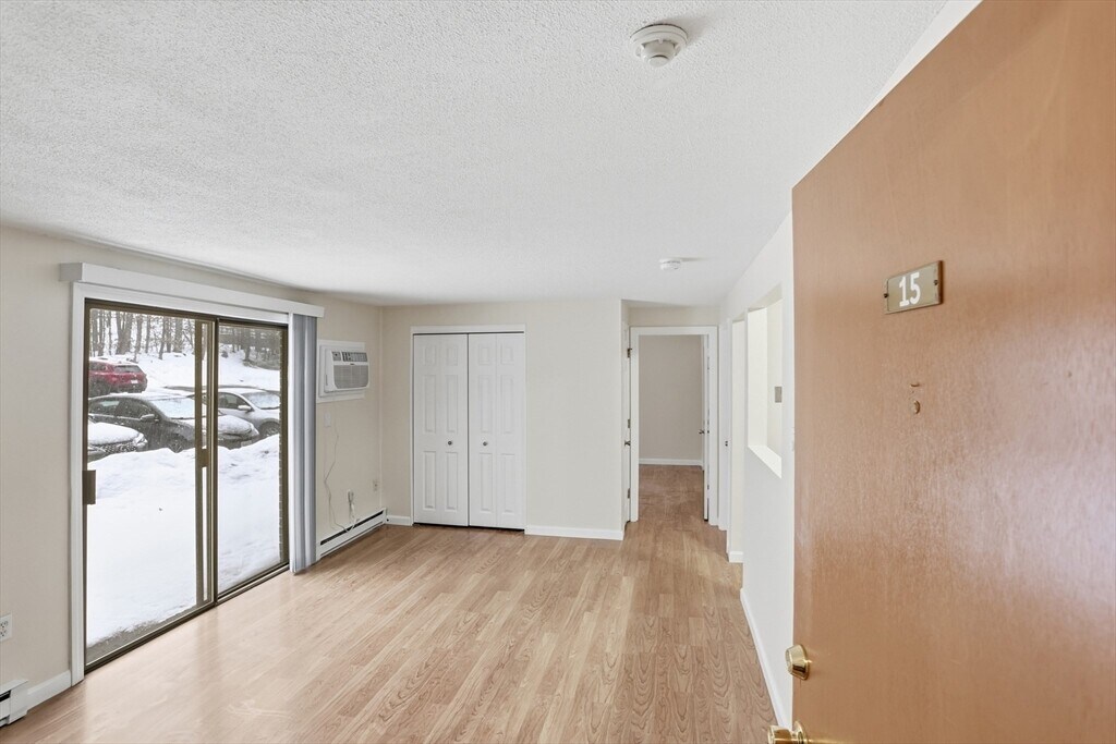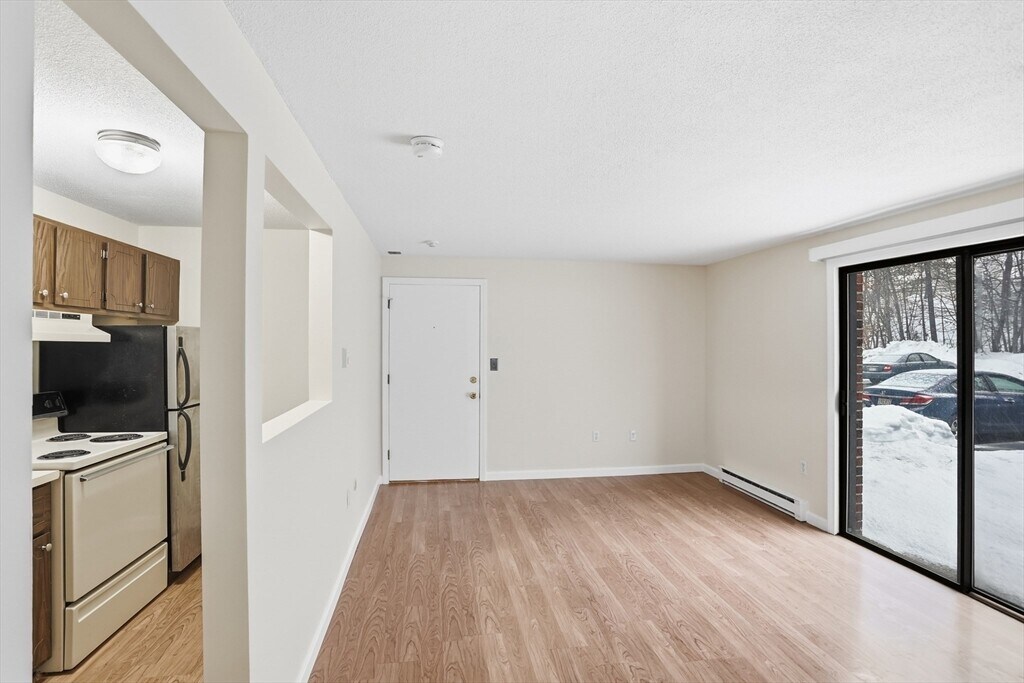 Adorable and surprisingly spacious 1-bedroom unit ready for immediate occupancy. This well-maintained home features freshly painted walls,laminate flooring throughout,and a tiled bathroom. The kitchen is fully equipped with all necessary appliances. The generous bedroom easily fits a king bed and includes a walk-in closet. A bright living/dining room offers sliders to a private grassy area with convenient access to the parking lot. Plenty of closet space. Located in desirable Great Road Condominiums with beautifully landscaped grounds,wooded views,in-ground pool,grill/picnic area,playground,and coin-op laundry on the first floor. Plenty of parking. Excellent commuter location close to shopping,restaurants,grocery stores,trails,and conservation land. Hot water,water,sewer,and parking included in rent. No pets. No smoking. MLS# 73484168