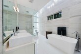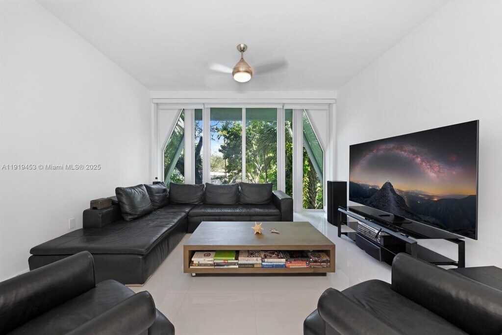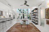 Designed by architect D.B. Lewis, this gated 2017 contemporary home in Coconut Grove offers a spacious layout ideal for entertaining. A dramatic three-story atrium greets you on entry, anchored by two mature oak trees. The lower level features a seamless indoor-outdoor flow and a chef’s kitchen with a gas Gaggenau cooktop and Miele and Viking appliances. Five en-suite bedrooms include a private primary wing with lounge, spa-style bath, and windowed walk-in closet. A 1-car air-conditioned garage and driveway space for three more vehicles add convenience. The rooftop retreat boasts a pool, gazebo, and cabana bath.