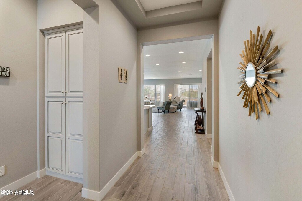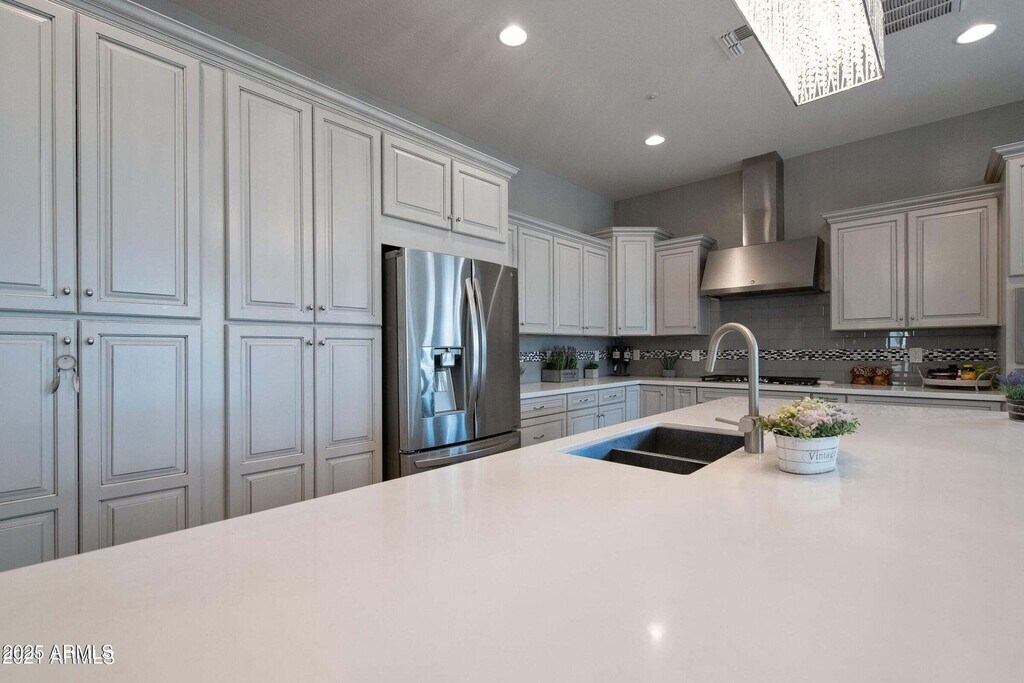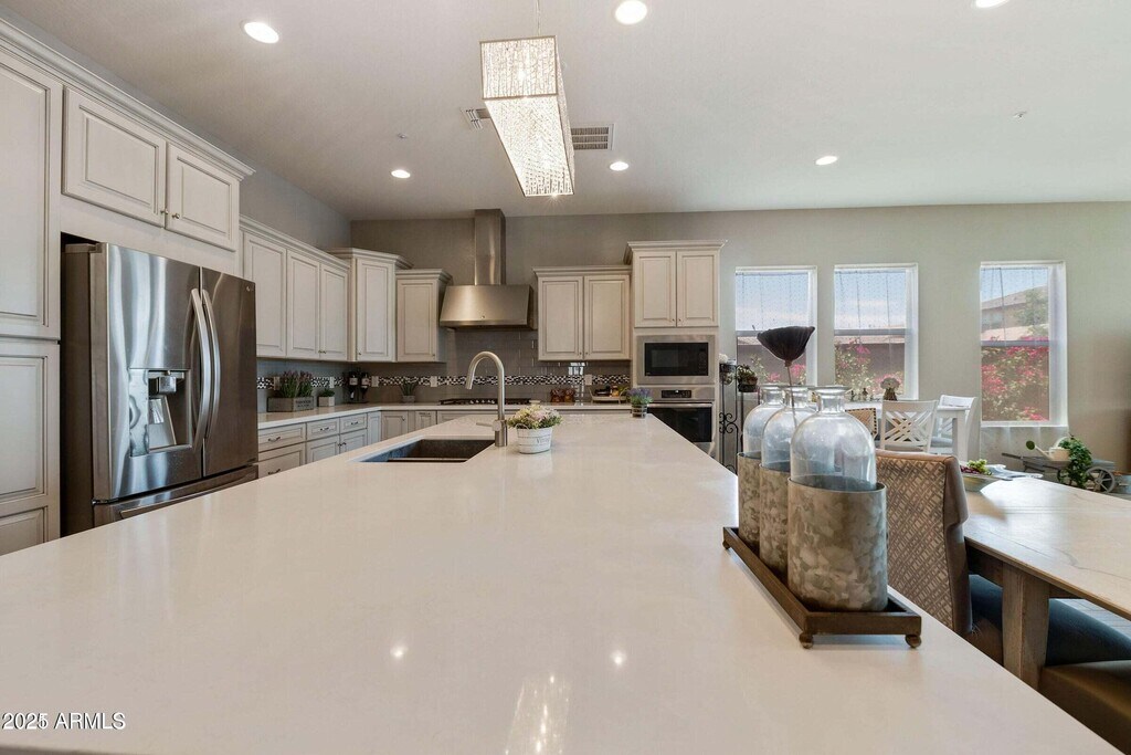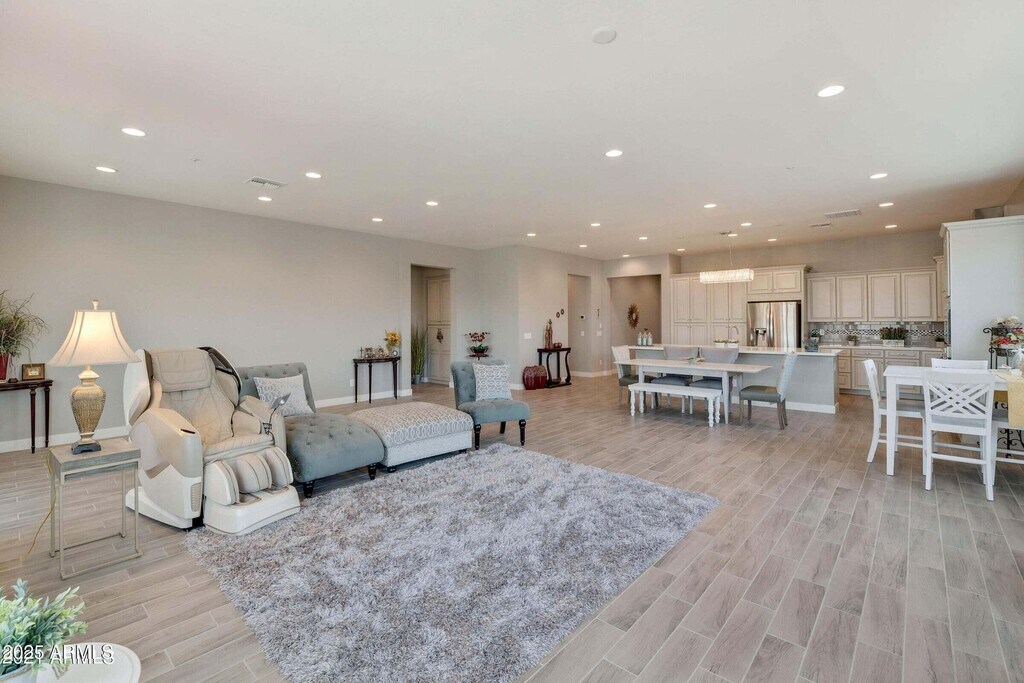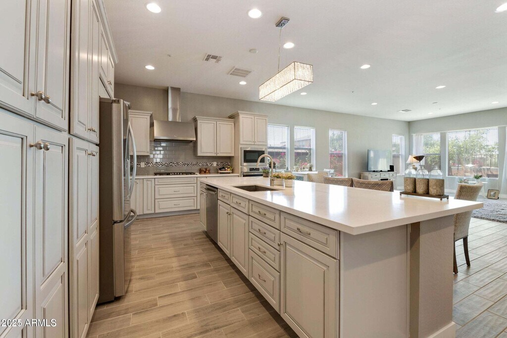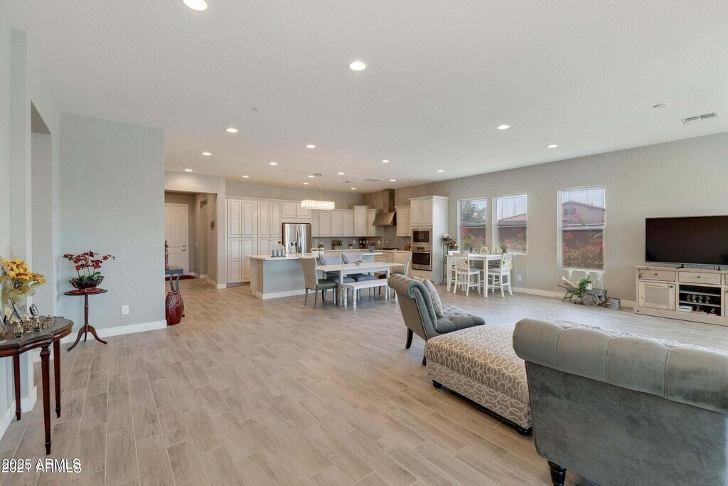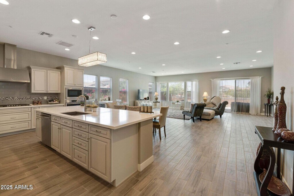 This stunning Recker Pointe home sits on a premium lot and showcases modern design throughout. Inside,10-foot ceilings and abundant natural light create a bright,open feel. The gourmet kitchen boasts a large island and quartz countertops,perfect for entertaining. The primary suite features dual vanities,a walk-in shower,and a generous walk-in closet. Step outside to a private backyard with an extended paver patio and low-maintenance artificial turf. The property includes a true 3-car garage (not tandem). Conveniently located just half a mile from the San Tan/Loop 202 Freeway,residents enjoy a community pool,playgrounds,picnic areas,BBQs,and nearby shopping and dining. [Tenants are scheduled to move out on December 7,2025. The home will be move-in ready by December 15th.]
