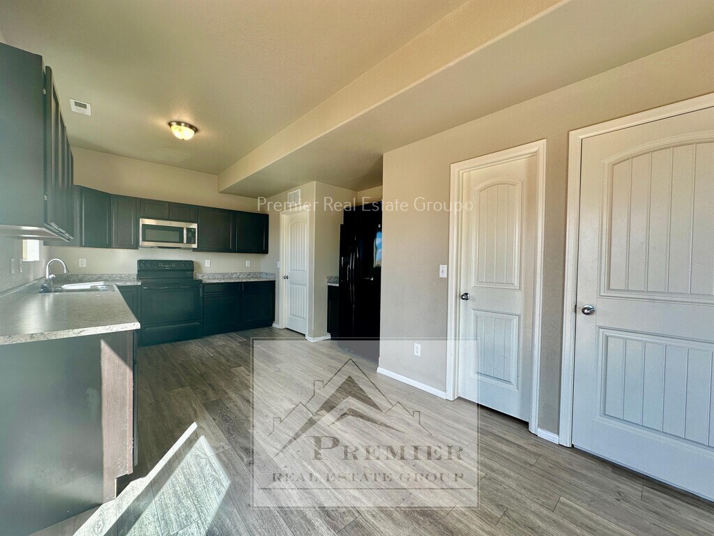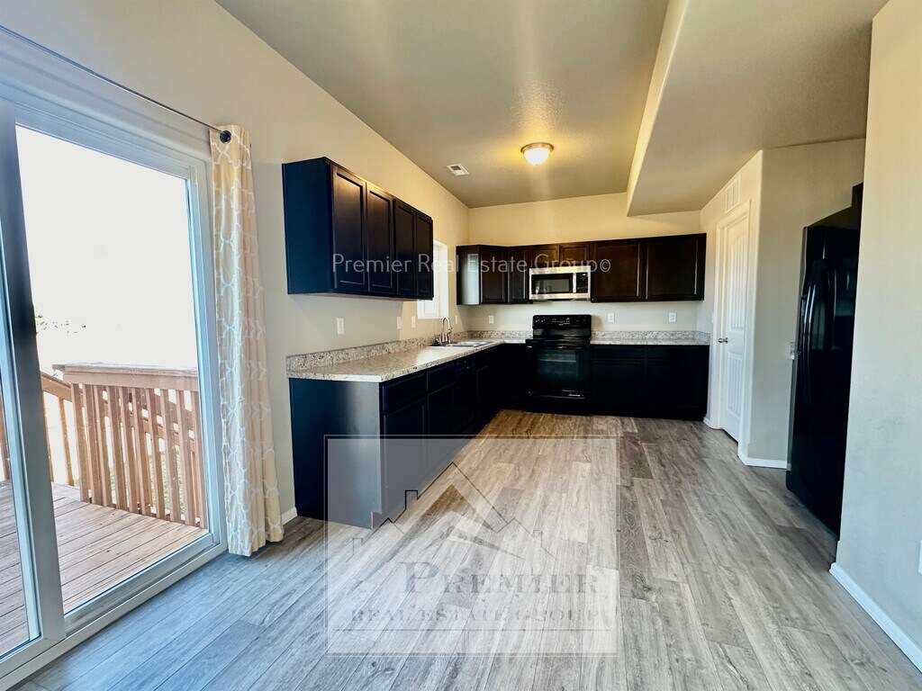 " Beautiful 4 bedroom, 2 1/2 bath, 2 car attached garage home in Cuchares Ranch! The main level contains LVP flooring, spacious and open living room and dining area, and beautiful views of the mountains! Kitchen has dark cabinets, walk-in pantry, and a walk out patio to back deck. Upstairs you will find 3 bedrooms with a main bath, a primary suite with adjoined 5-piece master bath and a walk-in closet. Large backyard that backs up to open space. Home includes air conditioning, solar panels to save on electrical bill, brand new carpet, close to Peterson, Schriever, and Fort Carson military bases, and Powers corridor; Widefield School Dist 3. A prospective tenant has the right to provide to the landlord a portable tenant screening report, as defined in section 38-12-902(2.5), Colorado Revised Statutes; and If a prospective tenant provides the landlord with a portable tenant screening report, the landlord is prohibited from: Charging the prospective tenant a rental application fee; or Charging the prospective tenant a fee for the landlord to access or use the portable tenant screening report.