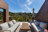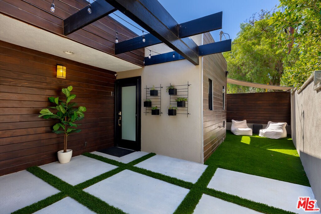 Tucked away in the hills of Studio City, this recently renovated contemporary home offers sweeping views from nearly every room. Surrounded by peaceful canyon scenery, the property feels worlds apart from city lifeyet it's only moments from Ventura Boulevard. The main level showcases an open floor plan where living, dining, and entertaining areas connect effortlessly. Floor-to-ceiling glass fills the space with natural light, while sliding doors extend the interiors to a spacious outdoor patio-perfect for dining under the stars and enjoying the dramatic vistas. The kitchen is highlighted by a large central island and sleek stainless steel appliances. On the lower level, you'll find a private ensuite bedroom as well as the expansive primary suite, complete with a fireplace, dual walk-in closets, and a spa-inspired bath featuring a soaking tub, rainfall shower, and double vanities. The bottom floor includes another bedroom, a shared bath, and a professionally soundproofed recording studio. A separate 345 sq. ft. guest house sits just below the main residence, accessed through its own gated entry. It offers a kitchenette, bathroom, detached laundry room, and two sets of sliding glass doors that capture the canyon views. Usage of this ADU can be included for an additional 1k/month. Multiple decks on every level overlook the canyon, creating a seamless connection between indoor and outdoor living. Additional features include a two-car garage with built-in storage, laundry, and an EV charger, plus two extra parking spaces, and a gated front courtyard. MLS# 25586929
