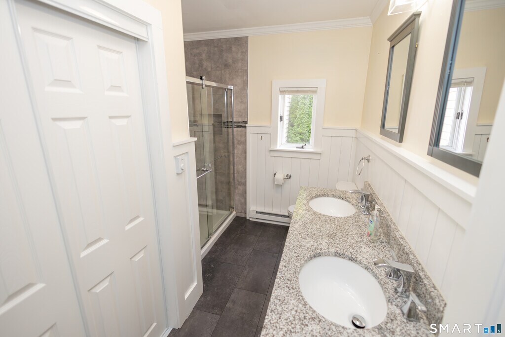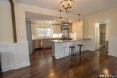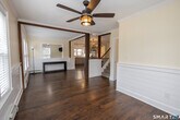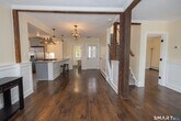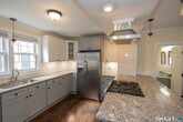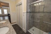 Gorgeous, fully remodeled 3-bedroom, 2-bath duplex-style rental offering exceptional space and amenities. Rent includes electricity, snow removal, and lawn care. This light-filled unit features a stunning first-floor layout with a beautifully updated kitchen complete with granite countertops, stainless steel appliances, gas range, abundant cabinetry, and an oversized breakfast bar. The kitchen opens seamlessly to the dining and living areas, highlighted by exposed beams, shiplap detailing, crown molding, and durable laminate flooring. The main level also includes a foyer/mudroom, one bedroom, and a full bath with a double vanity. The second floor offers a spacious primary bedroom with a walk-in closet, an additional bedroom, a full bath, and a convenient laundry room, along with access to a small upper deck. A walk-up attic provides ample storage space. Additional features include gas heat and a mini-split system for efficient air conditioning. Enjoy a large private driveway, expansive patio, and a small lawn area for outdoor use. Tenant is responsible for credit check, gas, trash, internet/cable, and renters insurance. Strong credit, employment history, and references required. Two months' security deposit required (unless applicant is 62 or older).