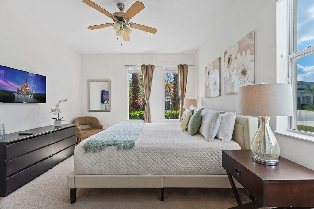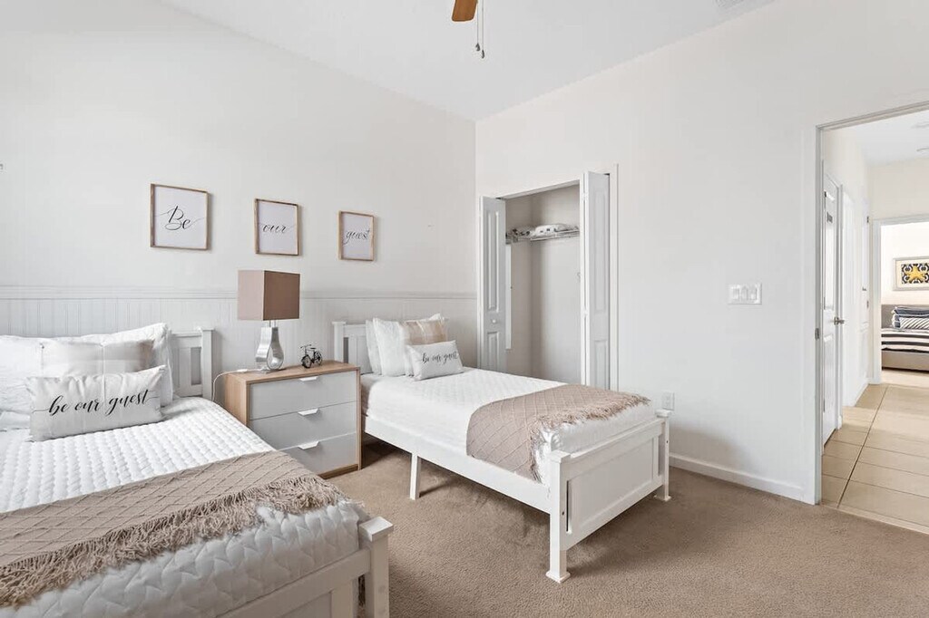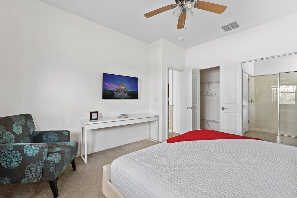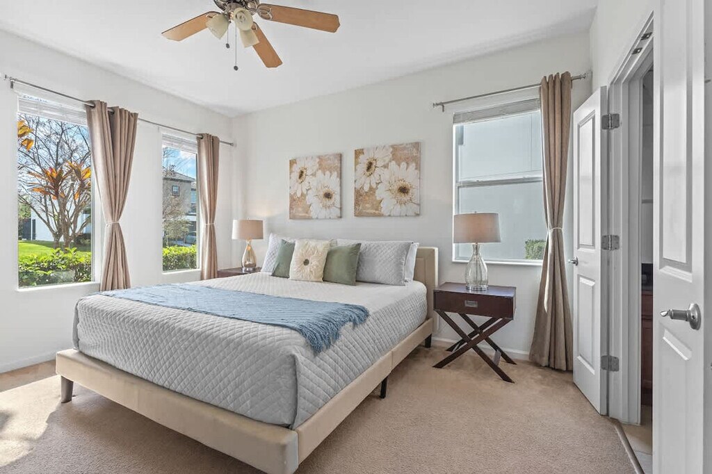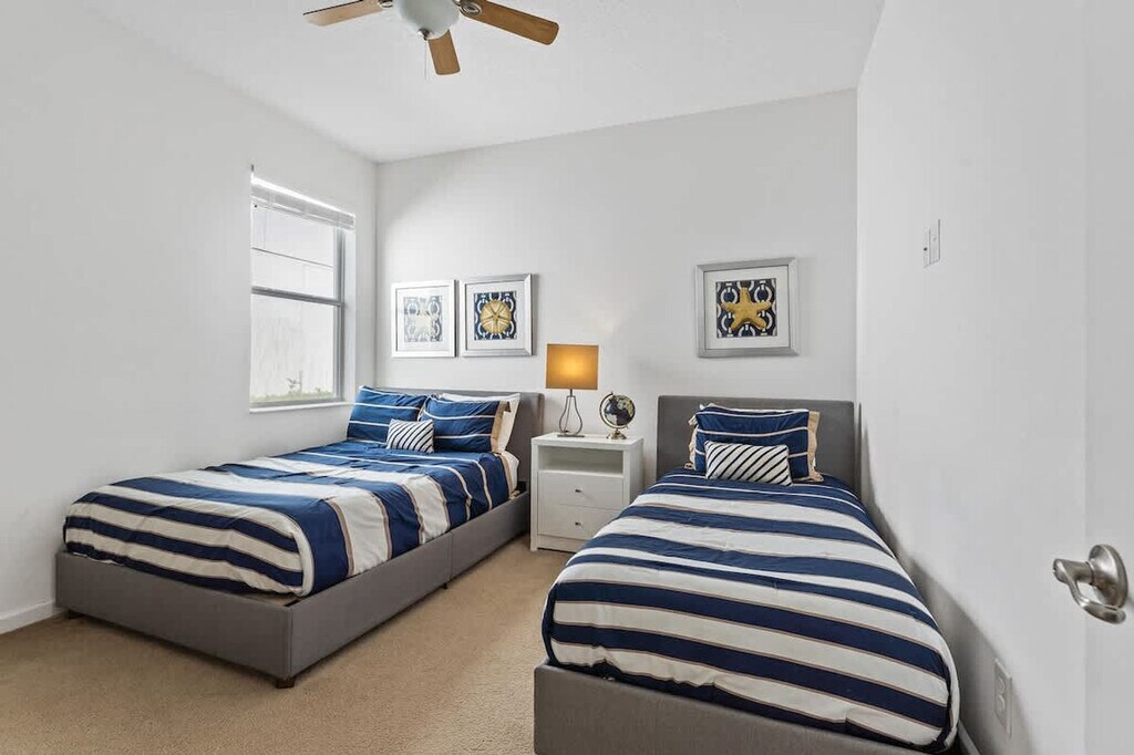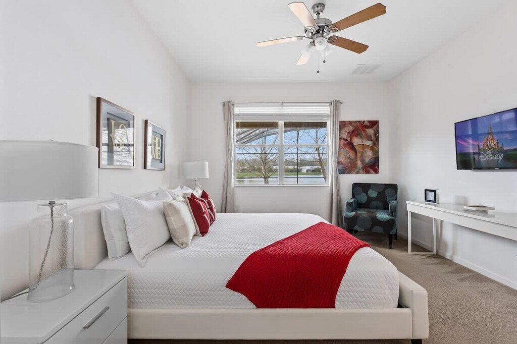 Enjoy your vacation time and allow some rest and deep relaxation with this amazing lake view property. Accommodating up to 9 guests, this home features 4 bedrooms and 3 bathrooms, offering a serene retreat for families or groups. The property is equipped with a game room and a private pool, ensuring entertainment and leisure during your stay. The apartment boasts a comprehensive entertainment set-up with a 55'' TV in the game room, a smart 65'' TV in the living room, and 42'' TVs in all bedrooms. Stay connected with high-speed Wi-Fi provided by Spectrum, offering up to 1 Gig speed. The property is pet-friendly, with a non-refundable pet fee of $250 for one pet and $150 for each additional pet. The private pool and spa can be heated for an additional fee, providing a relaxing oasis for guests. Optional extras and concierge services are available but not included in the reservation price. These include pet fees, pool heater, grill rental, early check-in, late check-out, and mid-stay cleanings. Prices and availability can be checked upon request. Baby items such as a Pack n' Play and stroller are complimentary for all stays. Strategically located near the famous Orlando theme parks and other special attractions, this home is nestled in the Bella Vida Resort, a gated community with over 15 acres of beautiful lakes and a 6700 square feet clubhouse. Enjoy the community pool, Jacuzzi, internet cafe, arcade, sport courts, TV room, walking trails, playground, and beautiful Italian gardens. Conveniently, Walt Disney World is 8.3 miles away, Universal Orlando is 14.4 miles away, and essential stores like Walmart, Publix, Target, Walgreens, and CVS are all within a short drive. Grills are not allowed on the property. The screen doors of the pool enclosure are padlocked for safety and security, with access only for pool cleaning staff. The garage is not available for guest use as it is converted into a game room. The property is in Florida, where wildlife and pests are common; regular pest control is conducted, but sightings may occur. Check-in is at 4 PM and check-out is at 10 AM, with options for early check-in or late check-out available at additional cost. Quiet hours are between 10 PM and 8 AM. This is a self-catering home with a basic starter kit provided, but guests should bring or buy additional items as needed. A laptop computer is not included. [SI]