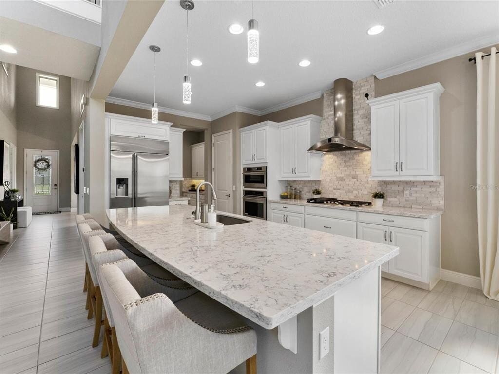 Experience luxury in this exquisite 4-bedroom,3.5-bath home in the gated community of Steeple Chase in Heathrow. The main floor features a formal dining room,office,half bath,and an open-concept living area with a spacious great room and gourmet kitchen complete with a large island,solid wood cabinets,quartz countertops,and high-end Monogram appliances. The first-floor primary suite offers pool views,two walk-in closets,a spa-like bath with dual vanities,a garden tub,an oversized shower with multiple heads,and a linen closet. Upstairs,enjoy a family room,media room,3 guest bedrooms,2 full baths,and a versatile loft perfect for a gym or playroom. Step outside to your private oasis: a custom saltwater pool and spa with waterfall features,fiber optic lighting,and a sun shelf,all within a fully fenced yard. A Weber Summit natural gas cooking center is ideal for hosting family Sunday barbecues. A 3-car garage with epoxy flooring provides ample storage. Located near I-4,shopping,dining,and with direct access to the Seminole Trail from within the neighborhood. Schedule your private showing today! MLS# S5136579