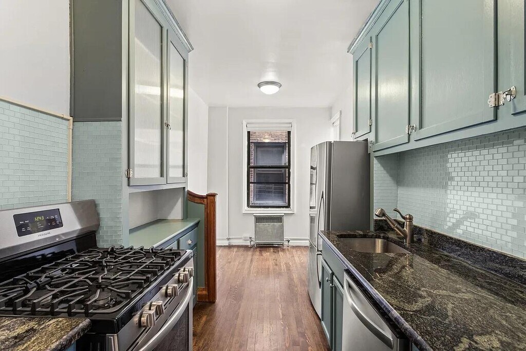 Welcome to 10L , a sun-filled, expansive 1-bedroom home nestled in the quiet, leafy streets of Fieldston-Riverdale. Thoughtfully designed, this home offers a layout that adapts perfectly to whatever life brings your way.Step into the generous and airy foyer, where sunlight streams through tall windows in every room, creating a warm and inviting atmosphere. The eye is immediately drawn to the striking teal kitchen cabinets paired with elegant granite countertops. These custom-built cabinets offer abundant storage all the way to the ceiling, combining style with practicality.The kitchen features Fisher & Paykel and Frigidaire appliances, ideal for all your culinary adventures. Just off the galley kitchen, a welcoming breakfast nook awaits — the perfect spot for morning coffee, casual meals, or afternoon tea. Bright & Spacious 1-Bedroom in Serene Fieldston-Riverdale – Unit 10L