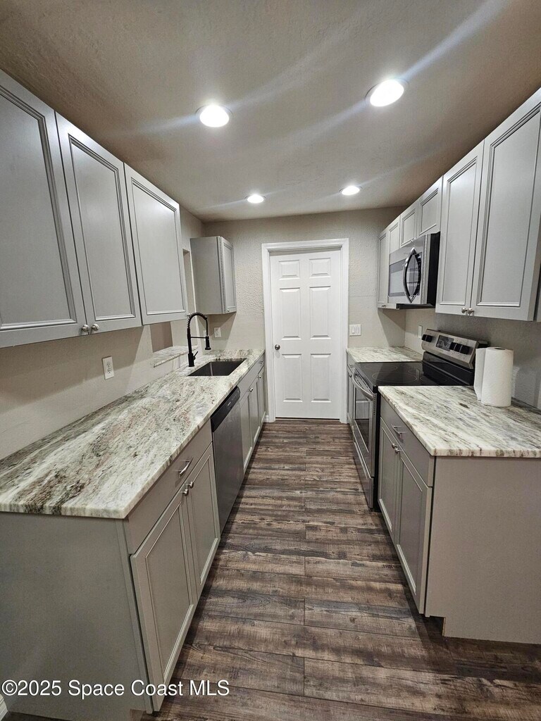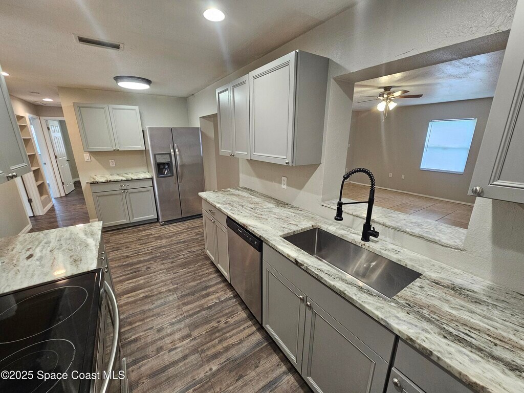 Welcome to this beautifully updated 5-bedroom,2-full bath concrete block home located on a quiet cul-de-sac ready for immediate move-in! Enjoy low-maintenance living with brand new luxury vinyl plank flooring and tile throughout -no carpet. The updated kitchen boasts new cabinets,sleek granite countertops,and newer stainless steel appliances (2023). Hall Bathroom has been tastefully remodeled,and the home features updated plumbing (no cast iron),newer AC,energy-efficient LED lighting,and other modern upgrades for comfort and peace of mind. Most of the Yard is fences except the additional side Driveway on the East side of the home. The Side Drive is big enough to park your RV,Trailer,Boat or extra vehicles. Conveniently located just minutes from I-95 and SR-520,this home offers easy access to shopping,dining,schools,and the Space Coast's best attractions.