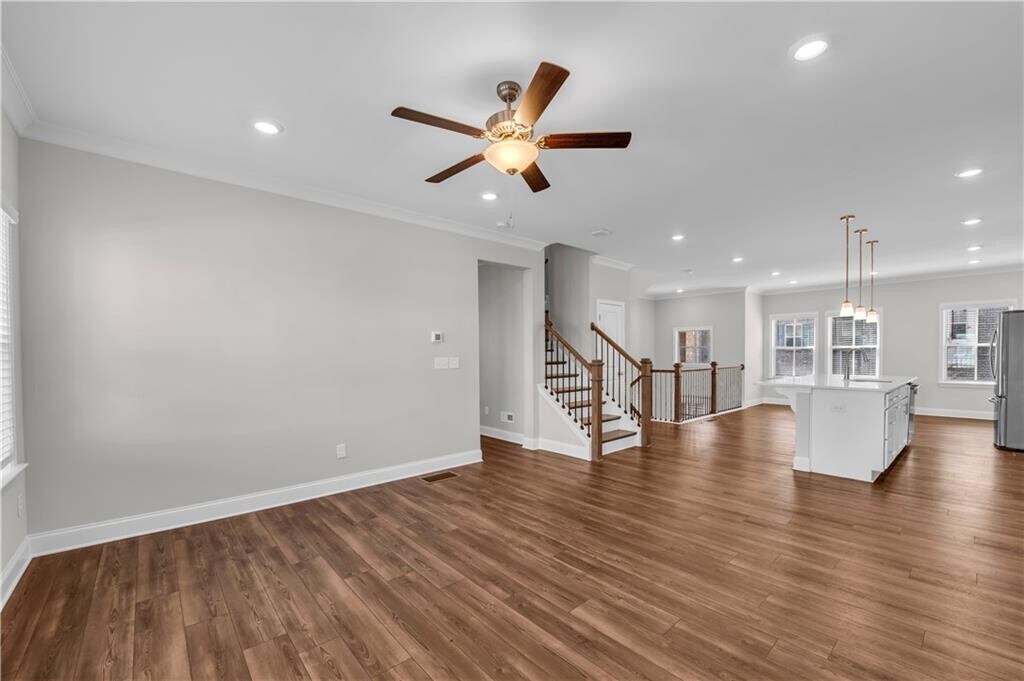 Welcome to this stunning middle unit townhome in the heart of Suwanee! This spacious 4 bedroom,3.5 bath home features an open floor plan with a generous family room,dining area,and a chef's kitchen with a large island — perfect for entertaining. Upstairs offers well-sized secondary bedrooms and a luxurious owner's suite with an oversized closet. Enjoy the privacy of an end unit in a vibrant,city-like community just walking distance to Suwanee Town Center Park. Lawn maintenance included (grass cutting,blowing,pine straw & weed control). Zoned for the best schools in Gwinnett County with easy access to I-85. Available NOW! GPS to neighborhood: 450 US-23,Suwanee,GA 30024. Interior photos representative of floorplan. MLS ID 7727800