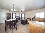Enjoy the peace and quiet with the luxury of being on the Ranches Golf Course! This beautiful end row, 2 car garage townhome has 3 bedrooms on the same floor with a master suite and walk-in closet. Laundry room is on the same level as the bedrooms! The kitchen features beautiful cabinets and granite counter tops looking into the living room with a cosy fireplace!