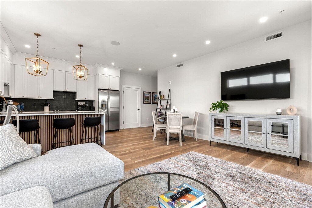 LOCATION meets QUALITY in this stunning new construction,condo quality 2 bed 2 bath with 1 parking space! Park in the garage and take the elevator up opening directly into your unit. Be greeted by gorgeous wide-plank floors,a massive open concept living space,tons of natural light and 2024 new construction. Both bedrooms are bright and airy and the primary features two closets,plenty of room for a king size bed,and an en-suite bathroom with double sinks. Revel in skyline city views from every room and entertain in your chefs kitchen that features a striking backsplash,quartz counters,stainless appliances and vented out stove. Enjoy this coveted location just steps from Stats in the true heart of South Boston where East and West Broadway meet. Numerous restaurants,shops,and boutiques are right at your fingertips and commuting is a breeze with MBTA bus stops right on Broadway. MLS# 73440125