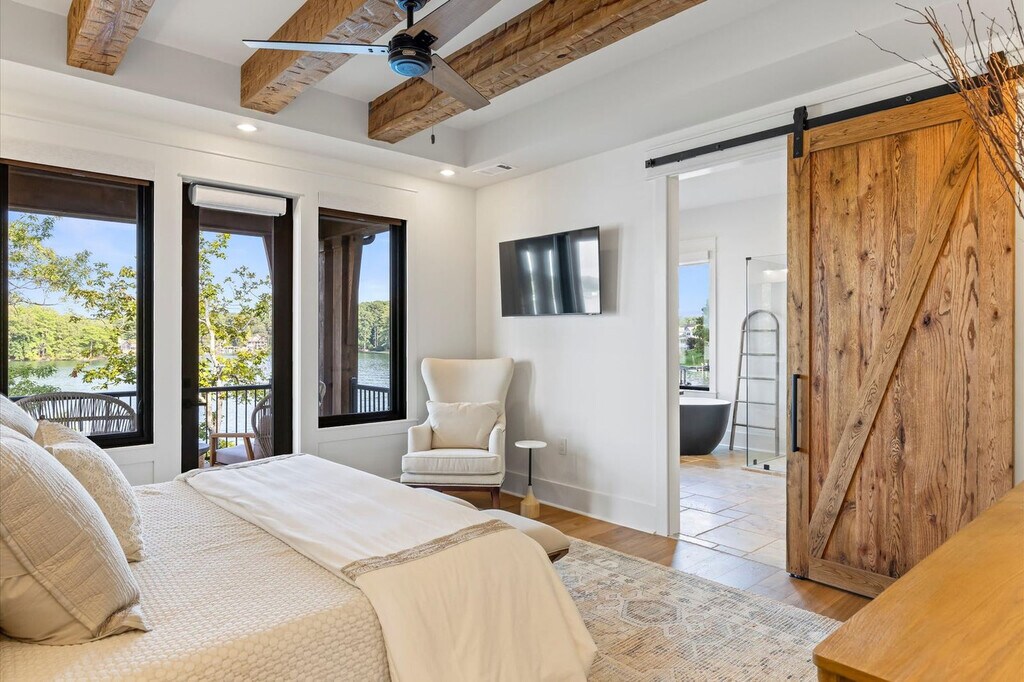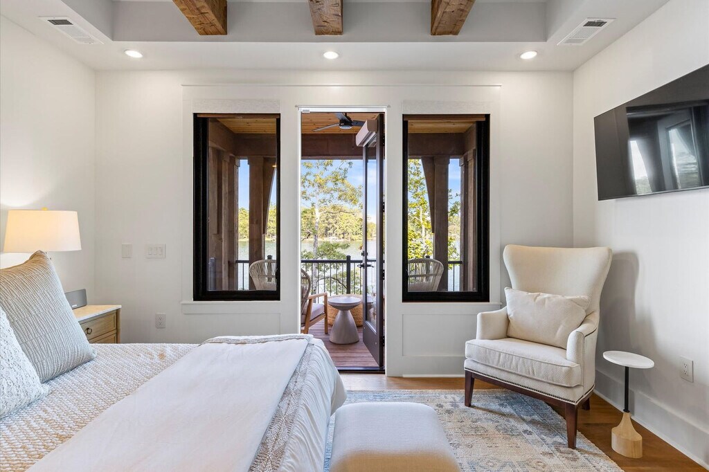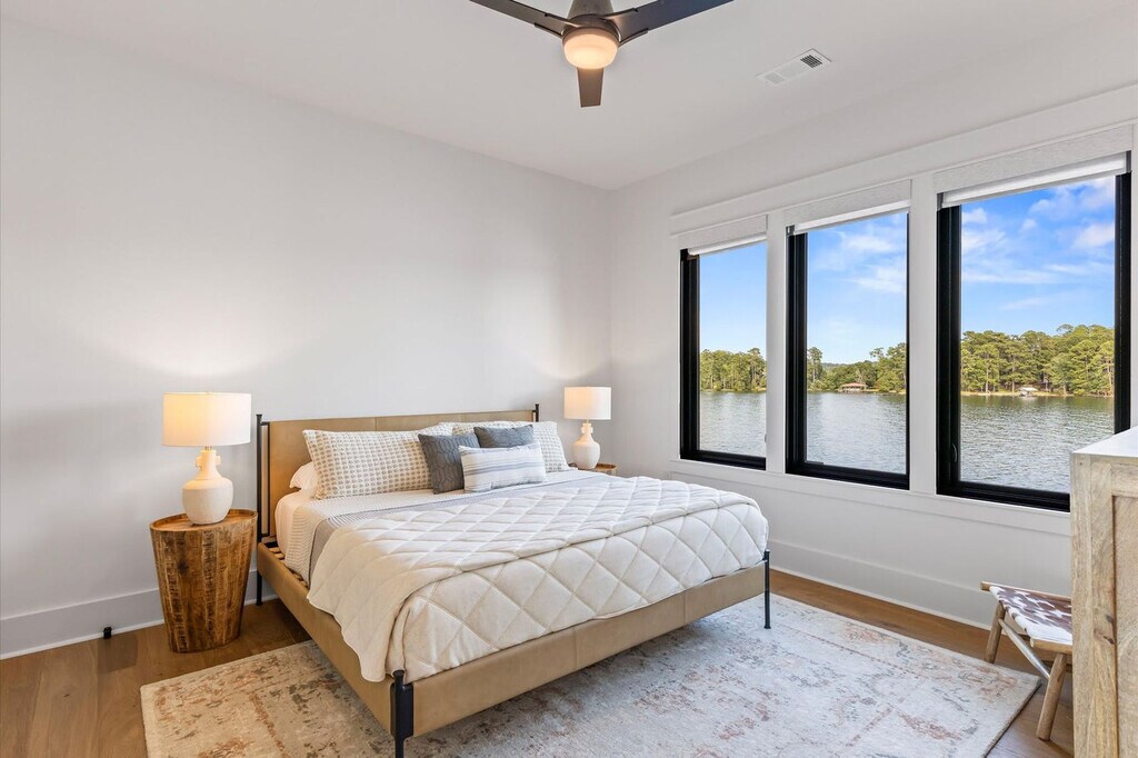 Feel at home in this 4-bedroom home at Anchor Pointe, a waterfront getaway on Lake Martin in Dadeville, Alabama. This spacious 2-level home boasts 4.5 bathrooms and can accommodate up to 14 guests. This home features an open-concept living, dining, and kitchen area. The chef's kitchen is fully stocked with high-end appliances, a large refrigerator, ample cabinetry, a large island with high seating, and a coffee maker with Nespresso pods and drip options. Enjoy the 65” Smart TV and indoor fireplace in the living room. For entertainment, there is a ping pong table, corn hole, and giant Jenga. Two kayaks are available for guest use. Enjoy the private pool and hot tub, maintained at 78°F (with slight variation depending on the weather). The home features a private dock with a boat slip that accommodates boats up to 26 feet. A high chair and pack 'n play are available for families. Ample parking is available. Located steps away from Lake Martin, this property is also near Martin Dam (10 miles southwest), Horseshoe Bend National Military Park (12 miles north), D.A.R.E. Power Park (6 miles west), and Wind Creek State Park (18 miles northwest). Nearby restaurants include The Camellia Cafe (2 miles away), Poplar Dawg’s Eatery (3 miles away), Chuck’s Pizza & Subs (3 miles away), Lake Martin Pizza Co. (3 miles away), Copper’s Grill (2.5 miles away), and Lil Smokey’s BBQ (3 miles away). Auburn University is 30 minutes away. Check-in is at 4pm and check-out is at 10am. No pets are allowed; if you are caught with a pet there will be an immediate $500 fine and eviction with no refund. No parties are allowed, and violations may result in immediate termination of the stay. There are 4 exterior cameras installed solely to monitor the cleaning team for quality and security purposes. No moving furniture, taping, or tacking anything to the walls or anywhere in the home. Guests must be 21 years or older to book this property. Parking is available in the driveway for a maximum of 4 cars. Street parking is not allowed. [SI]