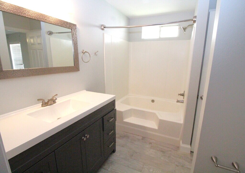 Beautiful 3/2 Home in Mirabelle Subdivision – This desirable northeast Pensacola home is located off Davis Hwy near UWF and features wood-look tile flooring in the main living areas with carpet in the bedrooms, an open living/dining space with vaulted ceilings, and a galley-style kitchen with white cabinetry, granite countertops, stainless steel appliances, pantry, and breakfast bar that overlooks the living room. A bright breakfast nook offers natural light and views of the backyard. The primary bedroom has an ensuite bath with updated vanity, garden tub/shower combo, and large walk-in closet, while the front bedroom boasts vaulted ceilings, a ceiling fan, and generous closet space. Additional highlights include an inside laundry room with washer and dryer included, a privacy-fenced backyard, and an extended patio ideal for entertaining or relaxing. Pets may be considered with owner approval and a $250 non-refundable pet fee per pet. Residents are required to maintain renter liability insurance, which can be added for $11.95/month, or you may opt into the Resident Benefits Package (RBP) for $45/month that includes insurance, HVAC air filter delivery, and on-demand pest control; more details are available in the application.