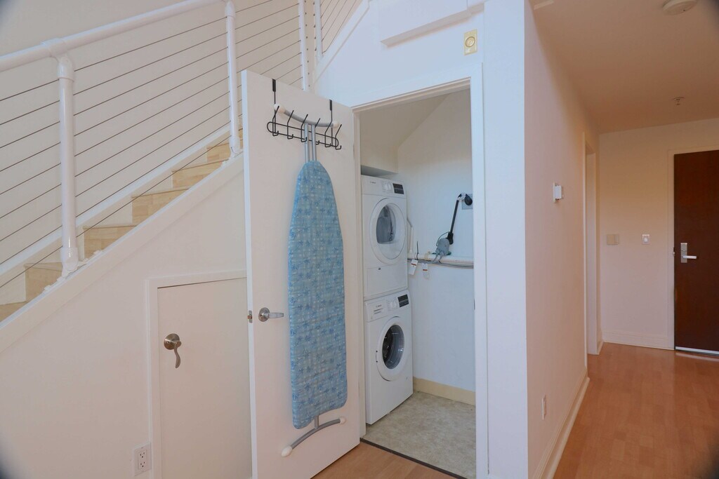 388 Townsend Street #8 This one-of-a-kind loft condo at 388 Townsend is industrial urban elegance at its best! Parking stall is small can only be 180 inches long! Built in '99, it offers one spacious master suite w/ custom-built wall-length closet & an expansive, wide, flexible entertainment area w/ full bathroom and private Zen patio! Space is ideal for entertaining & full of natural light! Kitchen is complete dishwasher, beautiful custom cabinets and stainless-steel counter and granite counter on island. A dramatic center fireplace, in-unit w/d, 1-car parking, sub stair storage, recessed lighting all completes this wonderful property! Walk out your front door to variety of trendy restaurants and bars or Oracle Park. Easy transportation options with CalTrain & Muni, Easy access to Embarcadero, 101, 280, and the Bay Bridge. A MUST SEE! This is a condo, the HOA charges a move in and move out fee to tenants. LOFT FEATURES: - Loft Bedroom ~ 2 full bathrooms ~ New washer and dryer in unit ~ Beautiful hardwood floors ~ Spacious kitchen ~ Dishwasher and garbage disposal ~ Recessed lighting ~ Large windows / A lot of natural light ~ Private patio ~ Two closets in bedroom / loft space ~ Extra space on second floor loft for home office ~ Parking space included (for smaller cars only) ~ Water and garbage included ~ Secure building with security cameras ~ no smoking ~ cat or small dog friendly Rentals Inc. Broker 02124746