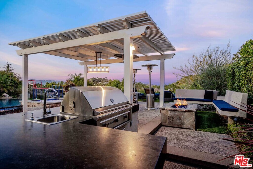 Set within The Oaks of Calabasas, this beautifully remodeled traditional offers 6 bedrooms and 7 bathrooms with an open, light-filled floor plan designed for effortless indoor-outdoor living. The main living areas include a spacious family room, dining area, and chef's kitchen with breakfast nook, all opening to the backyard with a pool, spa, outdoor kitchen, fire pit, and covered patio perfectly positioned to capture sunset canyon and hillside views. The kitchen features a large center island, Miele appliances, dual ovens and a built-in coffee station. A private office with French doors and a main-level guest bedroom provide flexibility, along with a dedicated theater ideal for entertaining. Upstairs, the primary suite offers a private balcony overlooking the serene backyard, along with a spacious bath featuring a large soaking tub and dual vanities. Four additional bedrooms complete the upper level. The home is equipped with a Control4 smart home system and is offered furnished or unfurnished. Residents enjoy access to The Oaks' premier community amenities, including a clubhouse, tennis and sport courts, pool, spa, fitness center, and more all just moments from The Commons' boutiques, dining, and theaters. MLS# 26745441