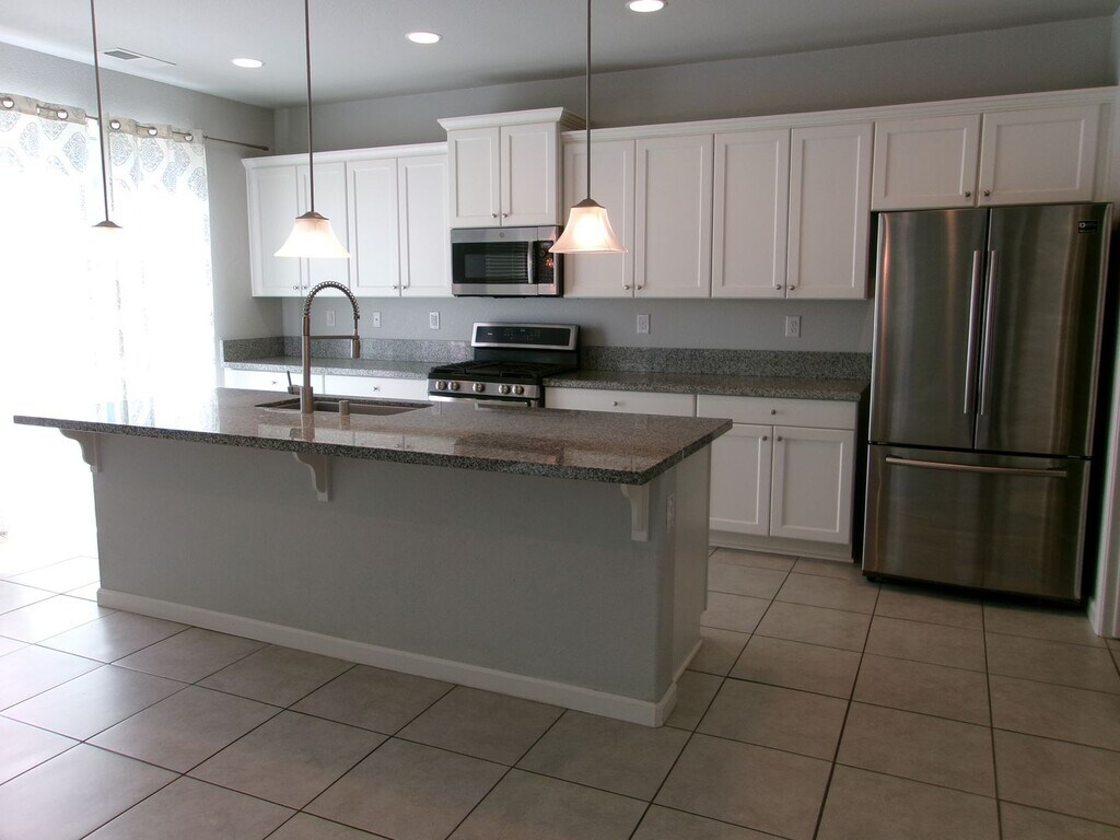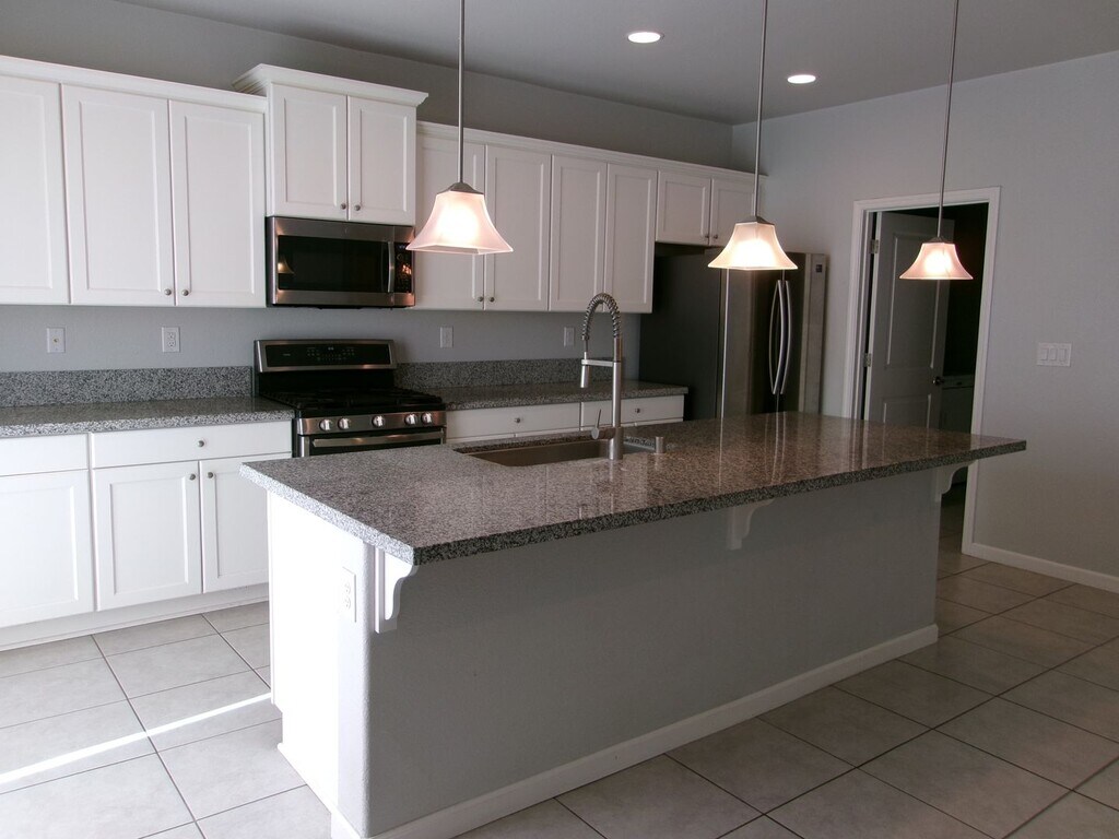 Beautiful spacious 4 bedroom, 2-1/2 bath home. Kitchen features granite countertops, large island/breakfast bar with pendant lighting, white cabinets, stainless steel appliance and gas range. Tile floors in main living areas and large family room, laundry room located downstairs.