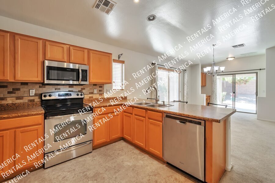 Beautiful single story home in the Villages of Copper Basin. This home features 3 bedrooms plus office, 2 baths, split great room floorplan, spacious kitchen with breakfast bar, pantry and beautiful tile backsplash. Master bedroom has a large walk in closet. Master bath has dual sinks, separate tub and walk in shower. Built-in desk area off the dining room, covered patio and a beautifully landscaped backyard. Don't miss the opportunity to live in this great home! One Time Admin Fee: $300, Pet Deposit: $300/pet (if applicable), Service Fee: 2%. Resident Benefits Package: $39/month. Helping Heroes Discount Available! Carpet Cats Allowed Ceramic Tile Disposal Dogs Allowed Dryer Garage Pets Allowed Vinyl Washer