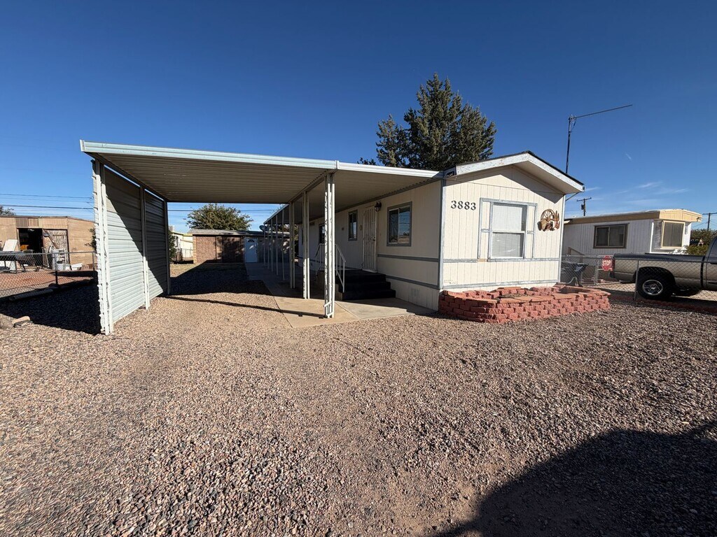 Welcome to this charming 2-bedroom, 1-bathroom home located in the vibrant city of Kingman, AZ. This 728 sq ft property is a perfect blend of comfort and convenience, featuring central heating and air conditioning to ensure year-round comfort. The home has been recently updated with new flooring and a fresh coat of paint, giving it a modern and inviting feel. The kitchen is equipped with an electric stove/oven and dishwasher, making meal preparation and clean-up a breeze. The fully fenced yard provides ample space for outdoor activities and includes a storage shed for additional storage needs. A carport is included for your vehicle's protection. Small dog may be accepted upon owner's approval. This home is a perfect blend of comfort and convenience, ready to provide a welcoming living environment.