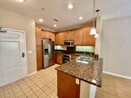Enter into this bright, open-concept home featuring stylish laminate flooring throughout. The upgraded kitchen offers modern stainless steel appliances, custom cabinetry, sleek granite countertops, and a convenient bar seating area — perfect to live out your chef dreams! The spacious primary bedroom comfortably fits all your furniture, and the adjoining bathroom includes a relaxing soaking tub and separate shower. Enjoy the luxury of a private patio with additional storage and your own full-size washer & dryer — no more shared laundry rooms! This gated community includes a secure parking garage with an assigned parking space and elevator access just steps from your front door. Community amenities feature a fitness center and BBQ area — ideal for outdoor dining and gatherings. Perfectly located near the beach and within a short distance to Del Mar Highlands Town Center with popular dining, shopping, a movie theater, library, and recreation center right at your fingertips.