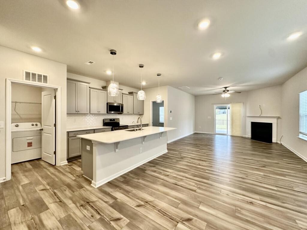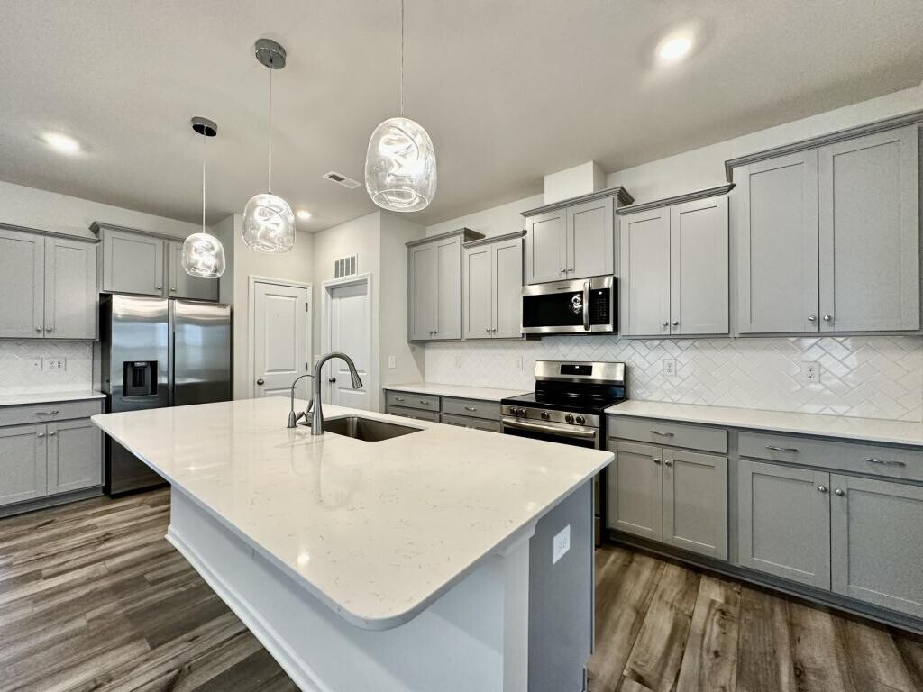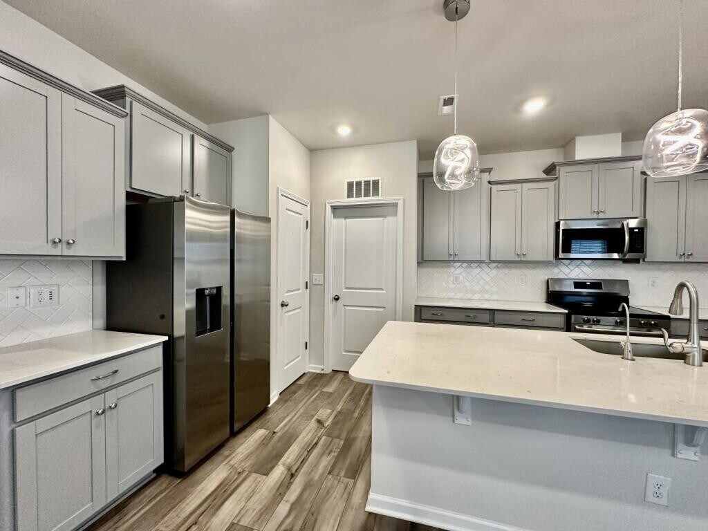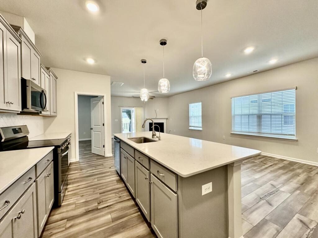 389 Runner Stone Lane in Fort Mill, SC is a newly built (2024) single-family home in the master-planned Elizabeth community. It offers about 2,202 square feet of living space, with 4 bedrooms, 2 full baths, and 1 half bath. The design features include an open floorplan, a main-level owner\'s suite, a loft upstairs, and quartz countertops in the kitchen. The home includes a 2-car attached garage, washer/dryer, large fenced in yard and is constructed with hardboard siding and stone veneer. Residents will have access to community amenities such as a clubhouse, fitness center, outdoor pool, walking trails, sport courts, and more.