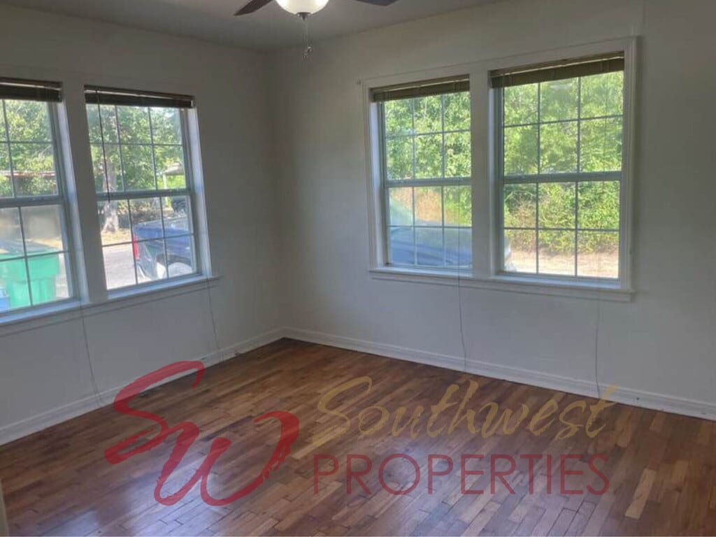This home features a master split layout, a spacious kitchen perfect for gathering, original hardwood floors, and a fantastic fenced yard with a storage shed. The interior of the property has been freshly painted. Situated in a peaceful neighborhood, it is conveniently located near downtown restaurants.