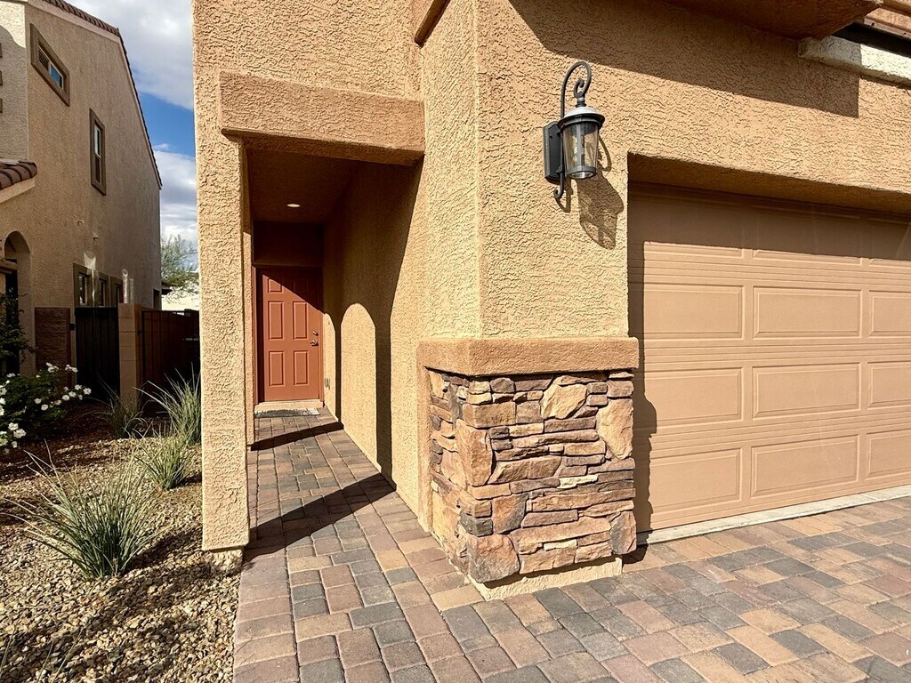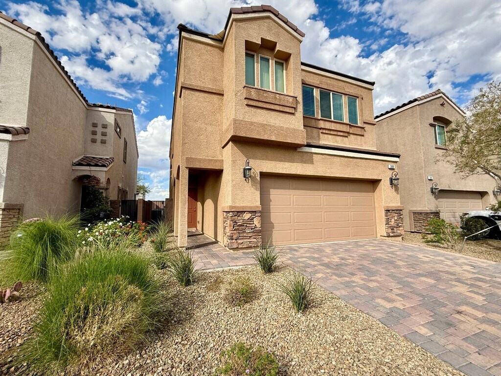 4 BED, 2.5 BATH, 2 CAR-GARAGE, TWO-STORY, SINGLE FAMILY HOME FOR RENT. This home is designed for comfort and convenience. The open floor-plan highlights a large kitchen island with stainless steel appliances, granite countertops, backsplash, and rich dark cabinetry with soft-close doors—perfect for gathering and entertaining. The first floor features sleek upgraded tile flooring, while the staircase and entire second floor is finished with durable luxury vinyl plank flooring. Outside, the backyard boasts stone pavers that create a stylish, low-maintenance outdoor living area ideal for relaxing or hosting. Located just minutes from the heart of Henderson with Costco, Walmart, the Galleria Mall and Sunset Casino, this home offers unmatched access to everyday shopping, dining and entertainment. Community with a large park, playground and resort-style pool and spa, this residence is the smart choice for those seeking upgraded finishes, excellent location and a lifestyle of convenience.