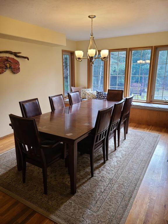 Toledo in the Timbers! Available Soon. Four Bedrooms. 2.5 bathrooms. Skylights and many windows. Wood floors and some carpeting. Granite Counters and Tile Backsplashes. Two woodstoves. Lots of storage space. Nicely-landscaped property that includes a greenhouse and areas for planting. Fruit trees and berry bushes. Chicken coop if you want chickens. Small shop-like area in the oversized garage. Decks and large, back patio with a hot tub. More than four acres of space. Trails for hiking from this privately located home surrounded by timber. Owner pays landscaping, internet, trash, furnace maintenance and well maintenance. On well water and septic system. Rent is $4000/month. Security Deposit is $4500. Dogs and cats will be considered with good references and $500 each. Limit to two pets. Assurance Real Estate Services Equal Housing Opportunity.
