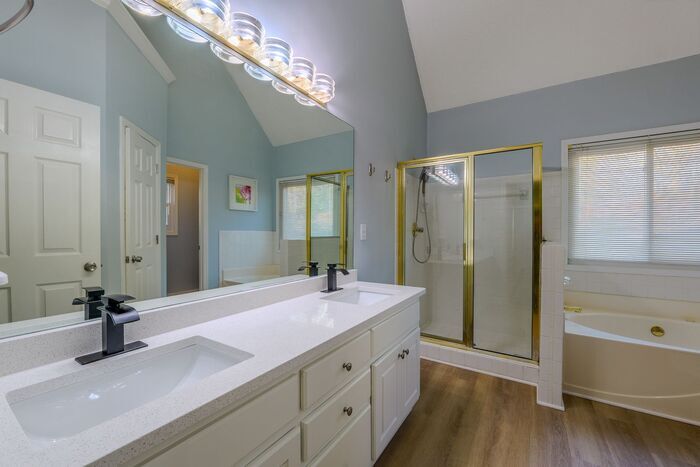 Apply now: For Rent | 3890 Cherry Ridge Walk, Suwanee, GA 30024 Located in the highly desirable North Gwinnett High School district, this beautifully updated home offers 4 bedrooms and 2.5 bathrooms with brand-new flooring and fresh interior paint throughout. The home features a main-level primary suite, providing convenience and privacy. The spacious living room boasts high ceilings and an open, airy feel, perfect for comfortable everyday living and entertaining. The kitchen is both stylish and functional, featuring white cabinetry and elegant stone countertops, creating a bright and modern space for cooking and gathering. Step outside to enjoy the fully fenced backyard, ideal for relaxing, outdoor activities, or pets. The community is quiet, well-maintained, and family-friendly, and it sits right next to a park, making outdoor recreation incredibly convenient. You’ll also love being just a 3-minute drive to Suwanee Town Center, where you can enjoy shopping, dining, events, and vibrant community life in Suwanee. A wonderful home combining top-rated schools, modern updates, and an unbeatable location. This property allows self guided viewing without an appointment. Contact for details.