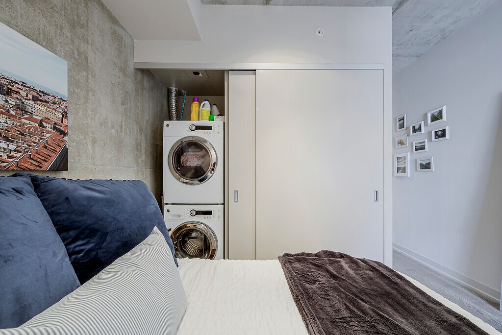 Welcome To Brant Park Lofts! Live Right In The Heart Of The Trendy Fashion District! Fully Furnished Junior 1 Bed 1 bath With Exposed Concrete, 9 Foot Ceilings, And Floor To Ceiling Windows. Stainless Steel Appliances, Walking Distance To Nightlife, Shops, Restaurants, Grocery Stores, And More! Unit Features Modern Kitchen Appliances: Fridge, Stove, Dishwasher, Built-in Microwave Stacked Washer and Dryer in unit Tons of natural light TTC Accessible Hydro + heat pump rental is extra. No parking and locker.