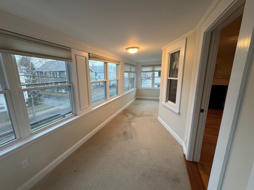 This modern,updated second-floor unit is ideally located just outside of Cushing Square. The spacious layout provides comfort and contemporary living with hardwood floors,central air,and updated double-pane windows throughout. The living room features a cozy gas fireplace and a bonus sunroom,perfect for a home office or a relaxing reading nook. The dining room is bright and centrally located,ideal for gatherings. The eat-in kitchen boasts granite countertops,stainless steel appliances,and ample cabinet space.The oversized primary bedroom offers generous closet and floor space for additional furniture. The full tiled bathroom includes a stand-up shower. For convenience,the unit has gas heating,gas cooking washer/dryer hookups in the basement. All utilities are included in the rent. Enjoy your private outdoor space on the exclusive-use porch. One off-street parking spaces are included. Available 1/1 or later. MLS# 73463203