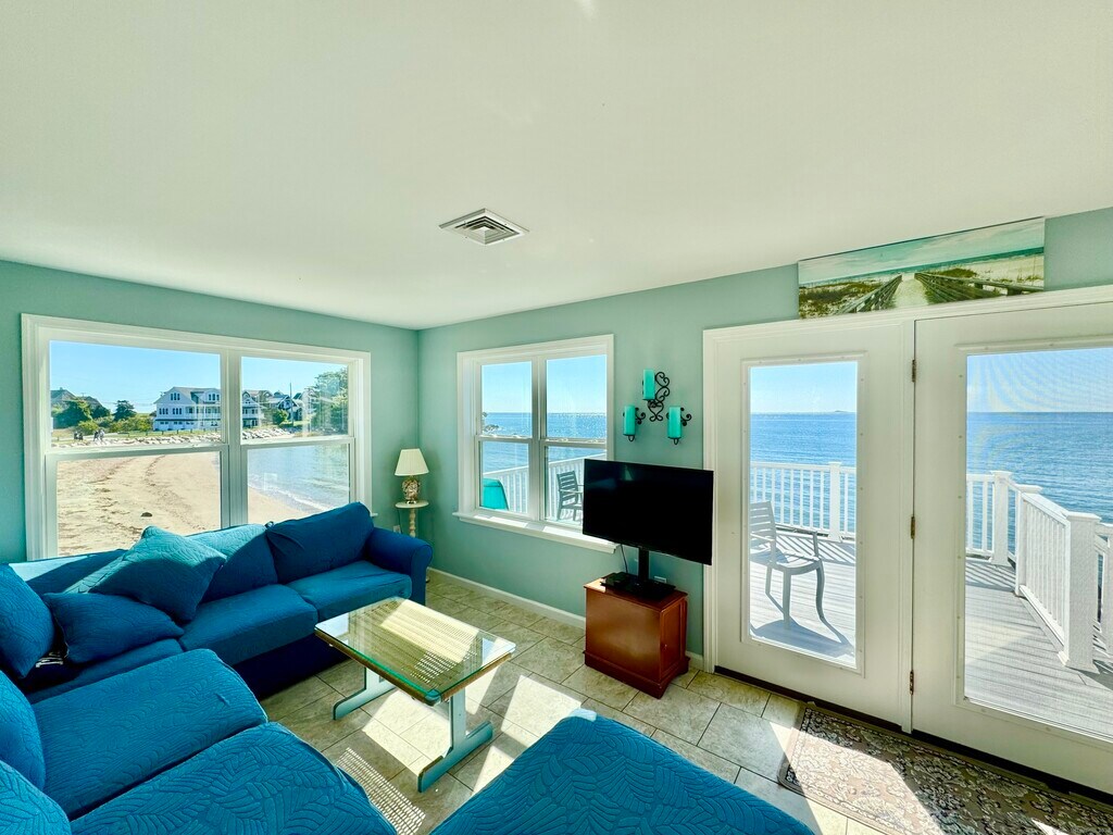Call for Availability - Academic Furnished Rental with direct ocean views and private sandy beach. Experience coastal living at its finest in this modern 3-bedroom, 2.5-bath fully furnished residence, available for academic rental from September 10, 2025 through May 30, 2026. Built in 2014 with energy efficiency in mind, this stylish and well-appointed home offers an open-concept first floor that seamlessly connects the kitchen, dining area, family room, and study...all with breathtaking views of both Long Island Sound and the Neck River. Upstairs, the primary bedroom suite features a full bath and stunning ocean vistas. Two additional bedrooms and an open den with bunk beds provide flexible space for guests. This home is ideal for professionals and visiting faculty. A massive front deck overlooks your private sandy beach, perfect for enjoying ocean breezes and panoramic views. The home also includes a washer and dryer, a fully equipped kitchen, electric heat pump HVAC, thermopane windows, and superior insulation for year-round comfort and efficiency. Wake up to the sound of waves and enjoy peaceful evenings in this one of a kind retreat. Absolutely no pets. Applicant must have excellent credit, proof of income, and use RentSpree application. MLS# 24101543