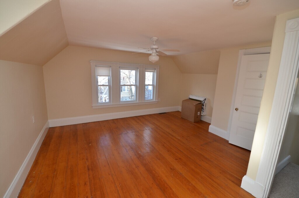 This is a townhouse apartment in a two family home. You have living room,dining room,kitchen,one bedroom the second floor. Third floor is two very large bedrooms with Mini Split heat/cool units and wood flooring. You have a common yard area,a patio for grilling,and 2 off street parking spots tandem.( parking on the street overnight is not allowed)Heat is forced hot air by gas,a washer and dryer in kitchen and access to a small deck off the kitchen. A small area in the basement for storage. You are short walk to the commuter rail,Oak Grove train is less than 2 miles if walking. Downtown Melrose has many restaurants to enjoy,CVS,Walgreens,Shaws Supermarket,and Whole Foods for groceries. All applicants must first view the apartment,then submit an application,and produce document showing FICO scores of all adults. (700+ required). Snow removal is by both Lessees and landscaping,grass cutting is by Lessor. Available now. MLS# 73471297