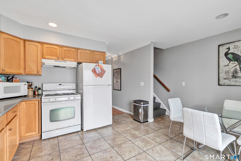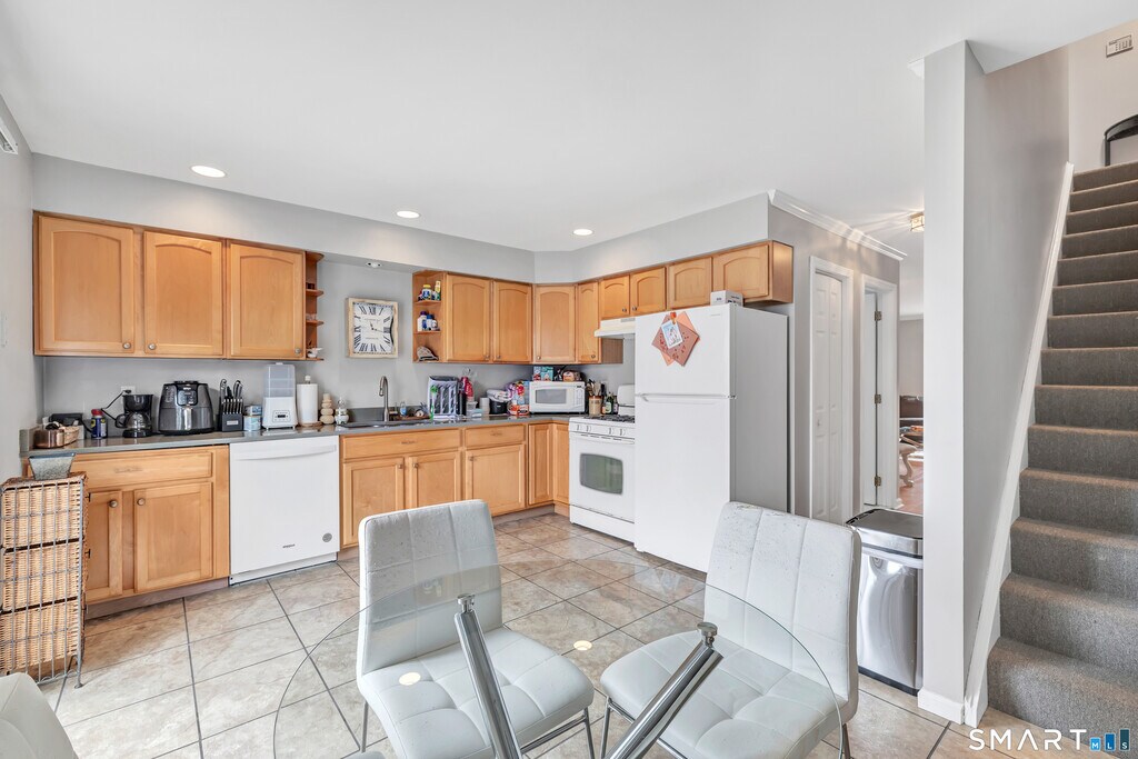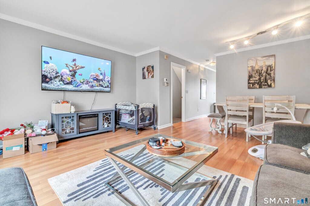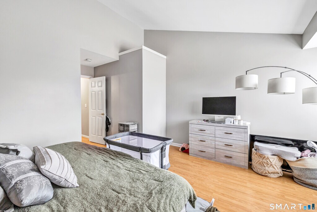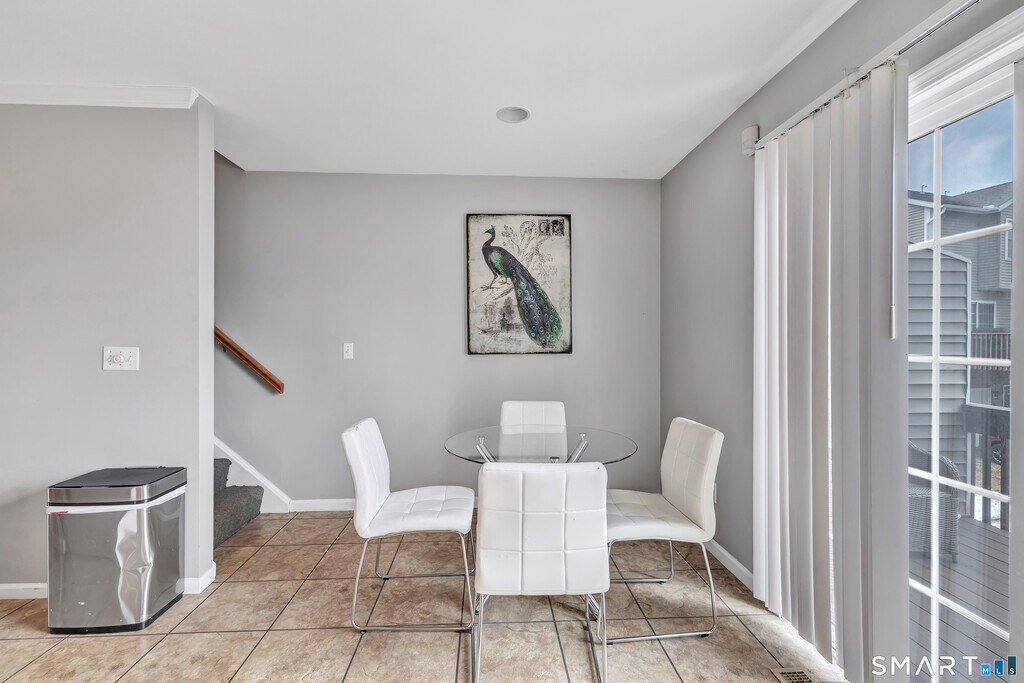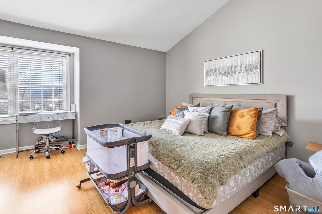 Call for Availability - Spacious & light-filled condo featuring large rooms, vaulted ceilings, laminate wood flooring & oversized windows throughout! The inviting Living Room offers sliding glass doors that open to a private back deck overlooking a peaceful wooded area; perfect for relaxing or entertaining. Enjoy cooking in the bright eat-in kitchen with plenty of cabinetry, quartz countertops, white appliances & sliding glass doors leading to a front balcony for added outdoor space. This home features 2 generously sized bedrooms, both with vaulted ceilings, walk-in closets, large windows, and laminate flooring. Convenient washer & dryer located on the bedroom level. Additional highlights include: 1-car garage, large basement ideal for storage, home gym, or hobby space, close proximity to major commuting routes, schools & shopping. A fabulous opportunity to live in a lovely, well-located townhouse offering space, light, and convenience! MLS# 24157072