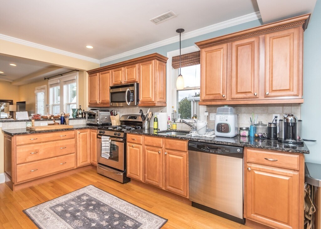 RENOVATED MULTI-LEVEL CONDO CLOSE TO MOODY STREET AND COMMUTER RAIL! Townhouse style unit converted in 2008 offers granite kitchen with maple cabinets and S/S appliances. Open format living room and dining area with new light fixtures. Other features include hardwood floors throughout,tons of closet space,renovated bathrooms,in-unit laundry and CENTRAL AIR!! Private deck and shared yard with patio and fire pit. 2 OFF STREET PARKING SPACES INCLUDED! Easy access to all that Downtown Waltham has to offer! Available 1.1.26. PETS CONSIDERED ON A CASE-BY-CASE BASIS. MLS# 73450921