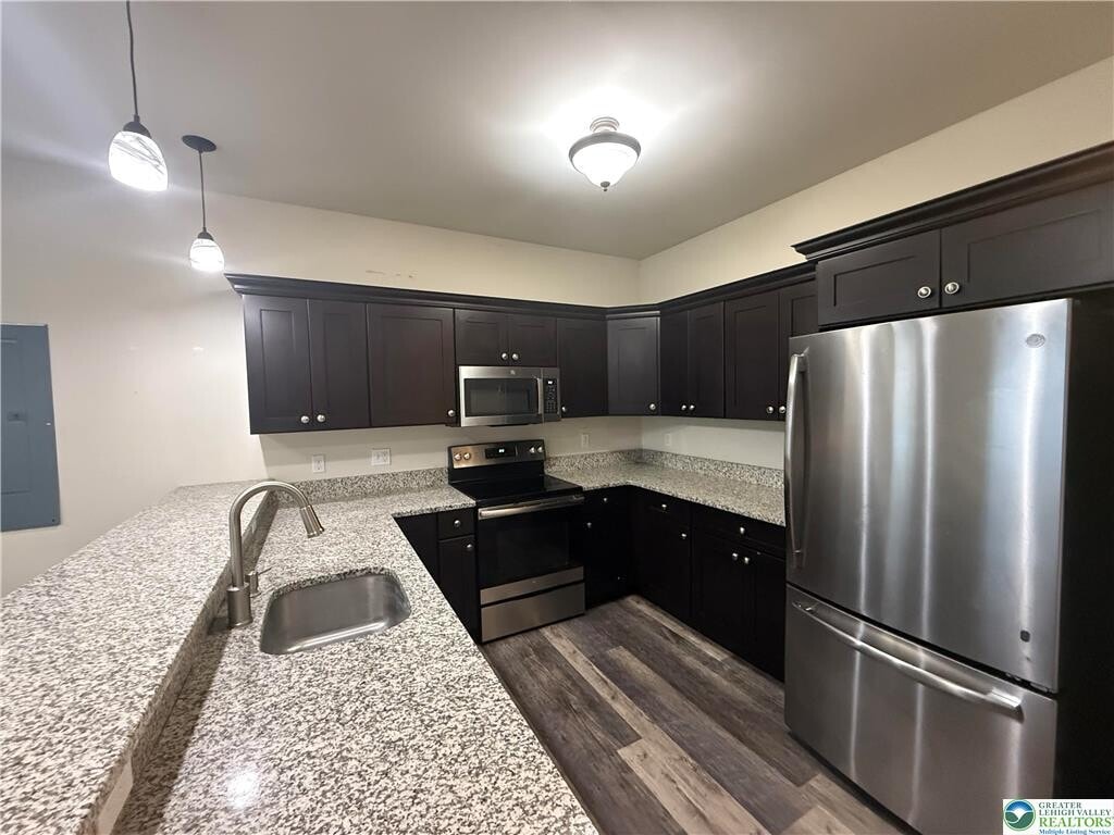 Luxury Southern Lehigh Townhouse, Ultra-Modern Eat-in Kitchen with stainless Steel appliances (Refrigerator, Ceramic cooktop range, dishwasher, microwave) Granite counter tops w/breakfast bar, plenty of kitchen cabinet space, pantry. Large Living Room with 9ft ceilings, LVP Wood flooring, 3 Bedrooms, 2.5 Baths, Primary Bedroom Suite with ensuite bath, 2nd floor Washer/Dryer included, 10x10 Trek Deck, Blinds on all windows. Parking Pad, Desirable location convenient to shopping and major routes 309, 378, I-78.